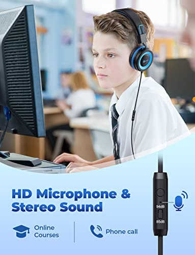 Детские наушники iClever с проводом, технология безопасной громкости 85/94 дБ, устойчивые к изгибу, прочные, складные, стереозвук 3,5 мм, проводные наушники для детей мальчиков и девочек для планшета/путешествий/школы, HS14