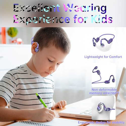 Детские наушники Mehomeli разработаны для того, чтобы ваши дети могли безопасно и весело наслаждаться прослушиванием музыки и аудиокниг. Оснащенные технологией Bluetooth 5.2, наушники обеспечивают стабильное и бесперебойное подключение. Открытая конструкция позволяет вашим детям слышать окружающие звуки, а ограничитель громкости 85 дБ защищает их чувствительный слух.