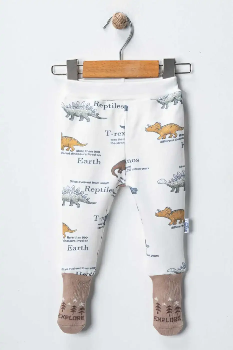 Идеальный выбор для маленьких любителей динозавров, детские пижамы с тапочками с динозаврами сочетают в себе комфорт и стиль. Мягкая и дышащая хлопковая ткань обеспечивает комфорт вашему ребенку весь день. Дизайн с тапочками согревает их ноги и обеспечивает уют, а милый принт с динозаврами завершает образ.