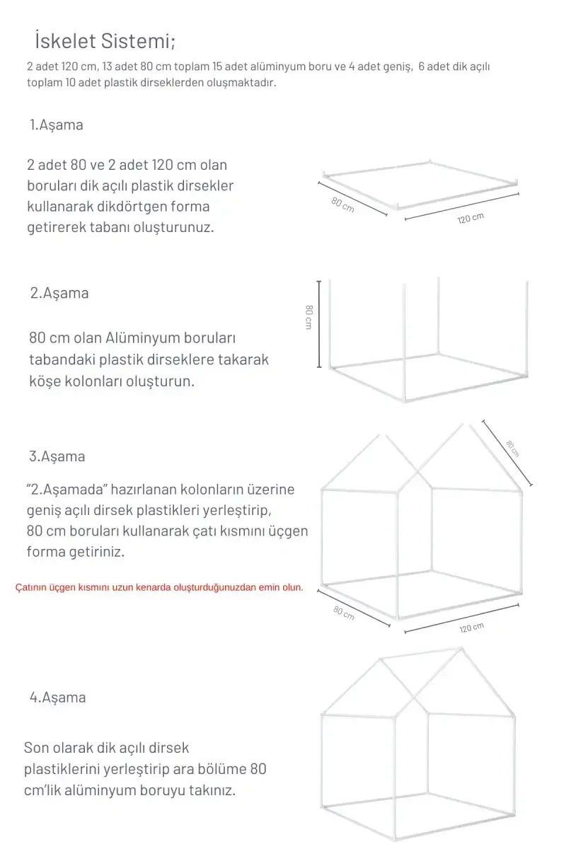 Çocukların hayal dünyasını zenginleştiren, eğlenceli ve güvenli bir oyun alanı sunan Çocuk Oyun Evi Lila - Mor Renkli Oyun Çadırı ile tanışın! Bu muhteşem oyun evi, çocuklarınızın kendi özel köşelerini oluşturmalarına, arkadaşlarıyla keyifli vakit geçirmelerine ve hayal güçlerini serbest bırakmalarına olanak tanır. Pastelya Kids kalitesiyle üretilen bu oyun çadırı, hem iç mekan hem de dış mekan kullanımına uygun olup, çocuklarınızın her yerde eğlenceye ulaşmasını sağlar.Lila ve morun büyüleyici uyumuyla tasarlanan oyun çadırı, çocuk odalarına renk katarken, bahçelerde ve parklarda da dikkat çekici bir görünüm sunar. Çocuklarınızın oyun oynarken güvende olmalarını sağlamak için, oyun evinin iskelet sistemi dayanıklı ve hafif alüminyum borulardan oluşmaktadır. Bu sayede oyun evi kolayca taşınabilir ve istediğiniz yere kurulabilir.%100 pamuklu kumaşlardan üretilen kılıflar, çocuklarınızın sağlığına zarar verecek hiçbir madde içermez. El emeği ile hazırlanan bu kılıflar, uzun ömürlü ve dayanıklıdır. Oyun evinin kurulumu son derece basittir. Herhangi bir alete ihtiyaç duymadan, sök – tak mantığıyla parçaları bir araya getirerek dakikalar içinde oyun evini kurabilirsiniz.Oyun evi ile birlikte gönderilen taban minderi, çocuklarınızın konforunu düşünülerek tasarlanmıştır. 1.Kalite antibakteriyel elyaf kullanılarak üretilen taban minderi, oeko-Tex sertifikalı kumaşlarla kaplanmıştır. Bu sayede çocuklarınız güvenle ve rahatça oyun oynayabilirler. Oyun evinizi kullanmadığınız zamanlarda, taşıma kılıfı sayesinde kolayca saklayabilirsiniz.Çocuk Oyun Evi Lila - Mor Renkli Oyun Çadırı, çocuklarınızın hem fiziksel hem de zihinsel gelişimlerine katkıda bulunur. Oyun oynarken sosyalleşmelerini, problem çözme becerilerini geliştirmelerini ve yaratıcılıklarını ortaya çıkarmalarını sağlar. Bu oyun evi, çocuklarınız için unutulmaz anılar biriktirecekleri özel bir mekan olacaktır. Onların hayallerini gerçeğe dönüştürmek ve mutlu bir çocukluk geçirmelerini sağlamak için bu fırsatı kaçırmayın!