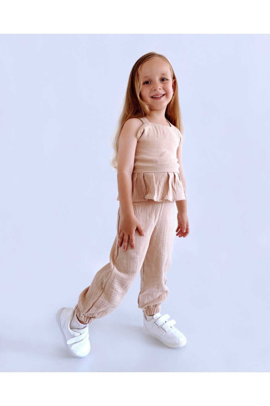 Комбинезон Джесика - идеальный выбор, чтобы подчеркнуть комфорт и стиль вашей маленькой девочки. Естественная структура муслиновой ткани позволяет коже вашего ребенка дышать и оставаться прохладной. Широкий крой обеспечивает свободу движений, что идеально подходит для игры, бега и прыжков. Застежка-молния спереди, которая легко одевается, облегчает жизнь мамам. Благодаря своим стильным и элегантным деталям комбинезон Джесика гарантирует, что ваша маленькая девочка всегда будет выглядеть стильно.