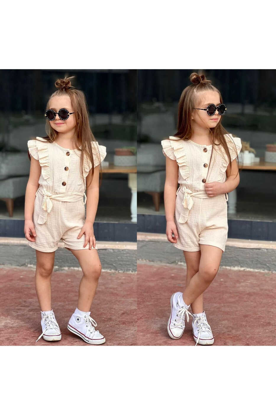 Детский комбинезон из муслина с поясом для девочек - Летний комфорт и стиль
