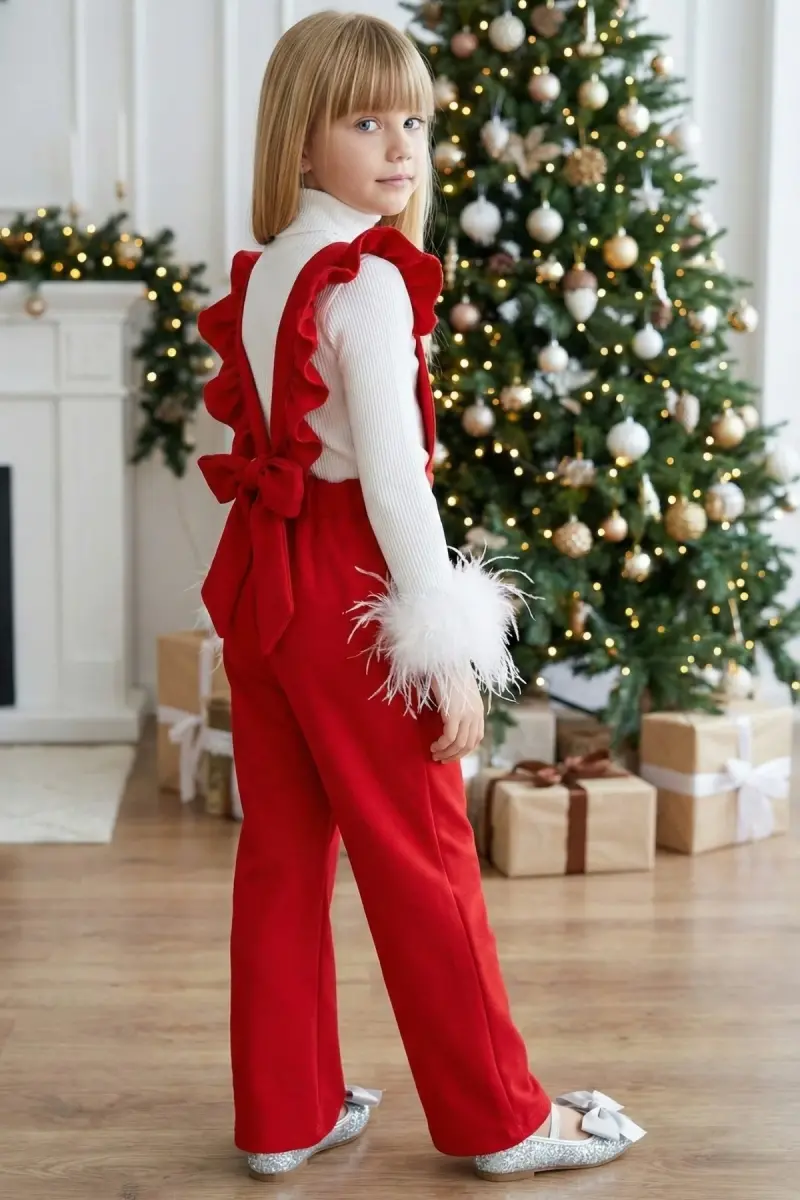 Добавьте в корзину детский комбинезон-сарафан с оборками и завязками из красного хлопка Berlin, чтобы дополнить стиль вашей дочери!
