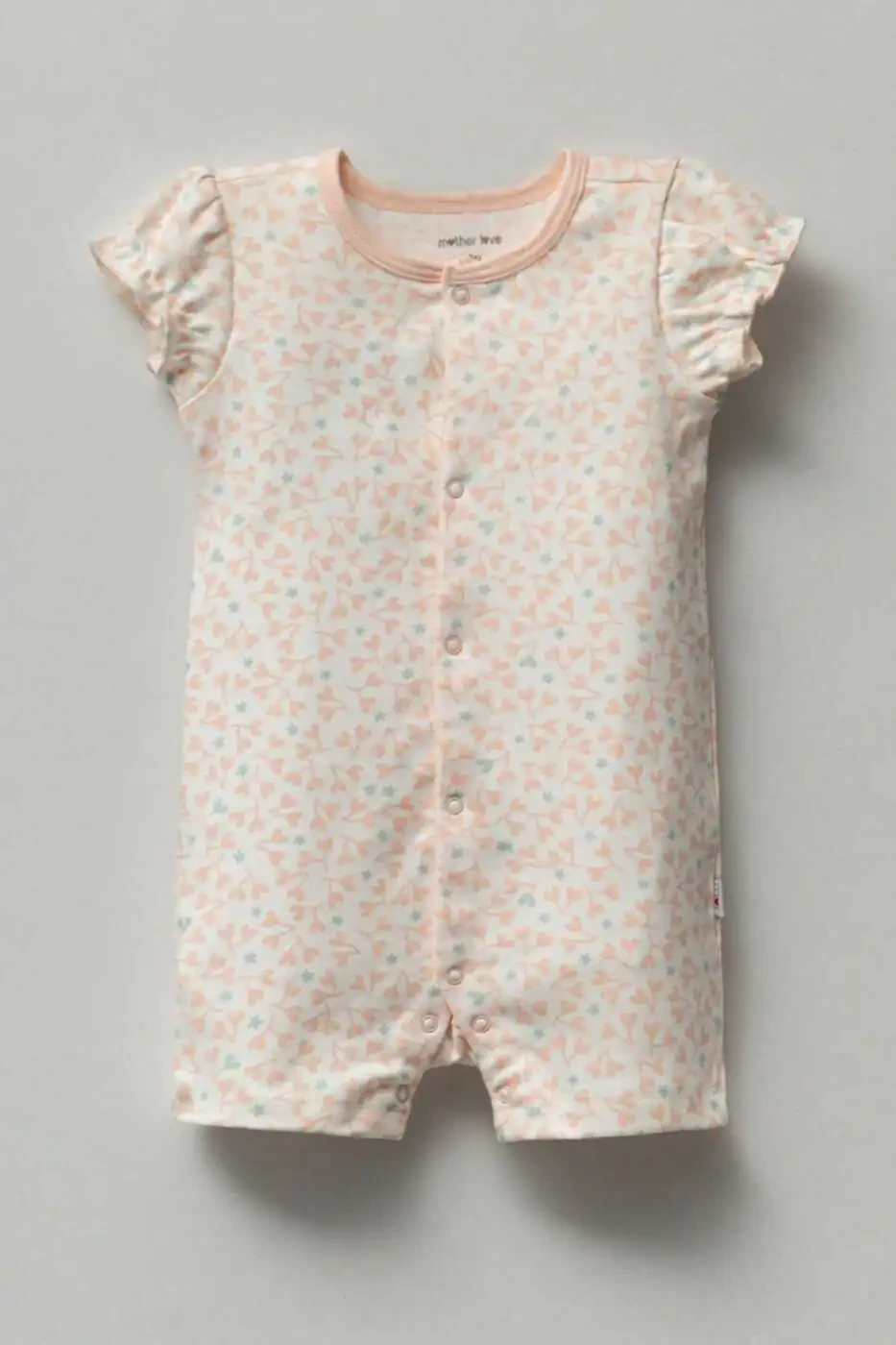 Сделайте так, чтобы ваш малыш выглядел комфортно, стильно и очаровательно в Детском комбинезоне-шортах для девочек из органического хлопка с розовым сердечком и синими звездами.