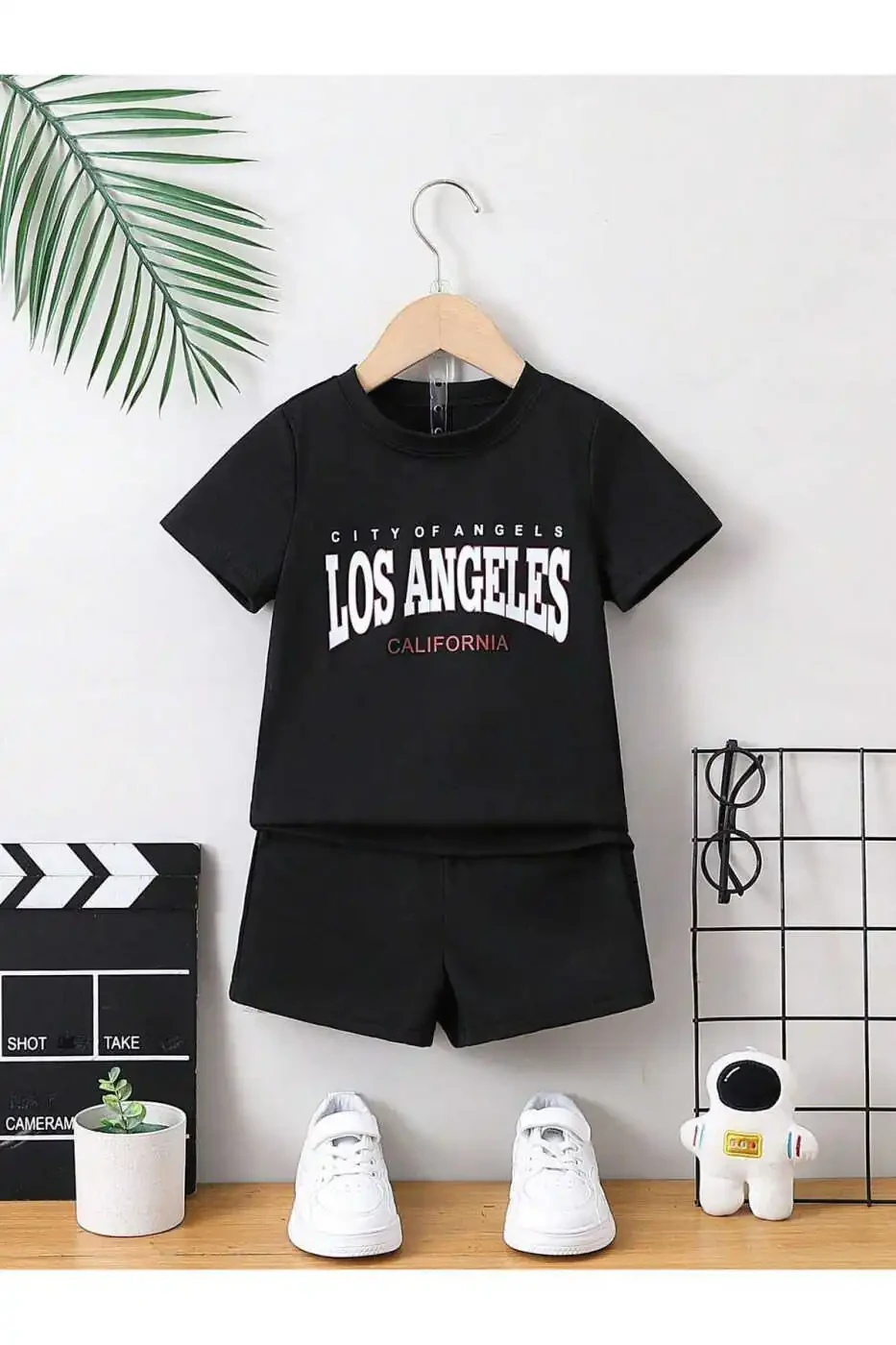 Этот комплект из футболки и шорт с принтом в стиле Лос-Анджелес, Калифорния, идеально подходит для того, чтобы ваш ребенок проводил летние месяцы в комфорте и стиле. Изготовленный из 100% хлопка, мягкий и дышащий материал обеспечивает комфорт вашему ребенку в течение всего дня. Футболка с круглым вырезом предлагает стильный и комфортный вид, а шорты обеспечивают свободный крой, позволяющий свободно двигаться. Этот комплект - идеальный выбор для летних приключений вашего ребенка.