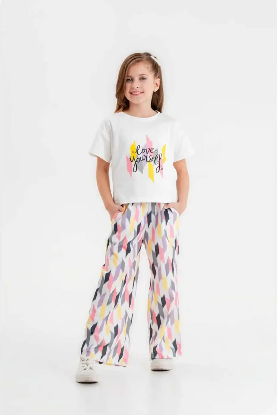 Этот специальный комплект, разработанный для ваших маленьких принцесс, отличается милым принтом Love и удобным круглым вырезом. Идеально подходит для повседневного использования, комплект предназначен для девочек в возрасте от 5 до 12 лет.