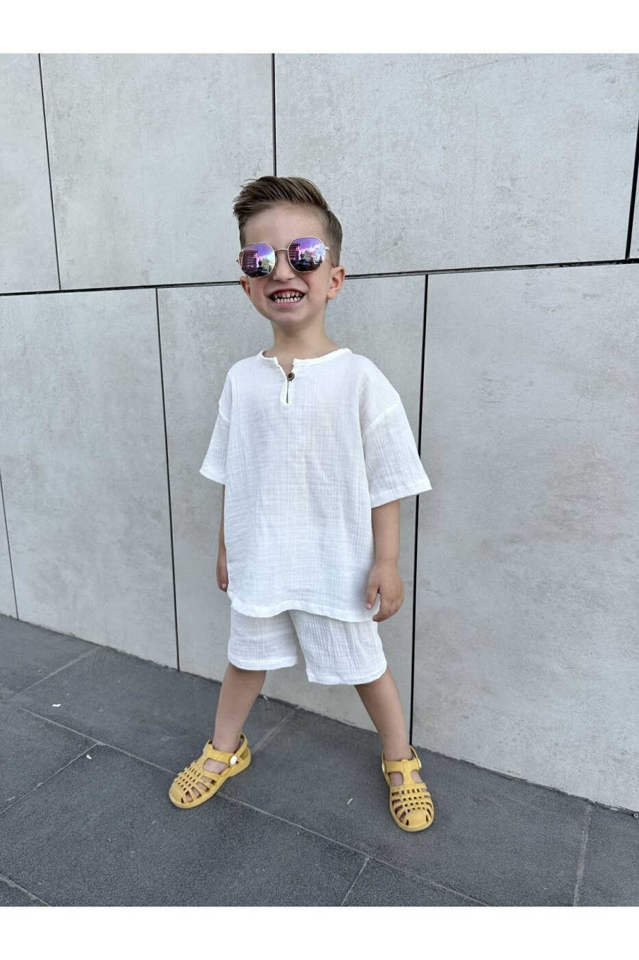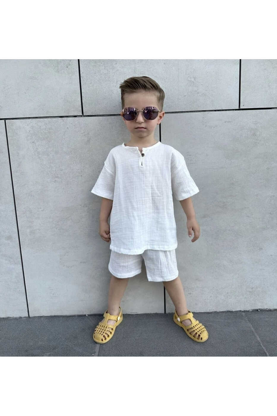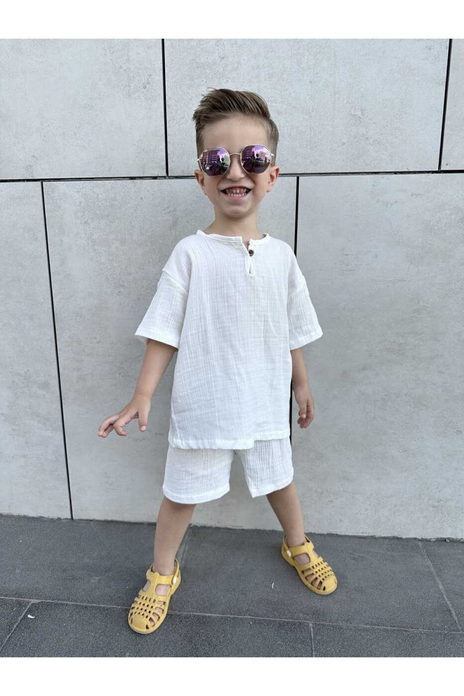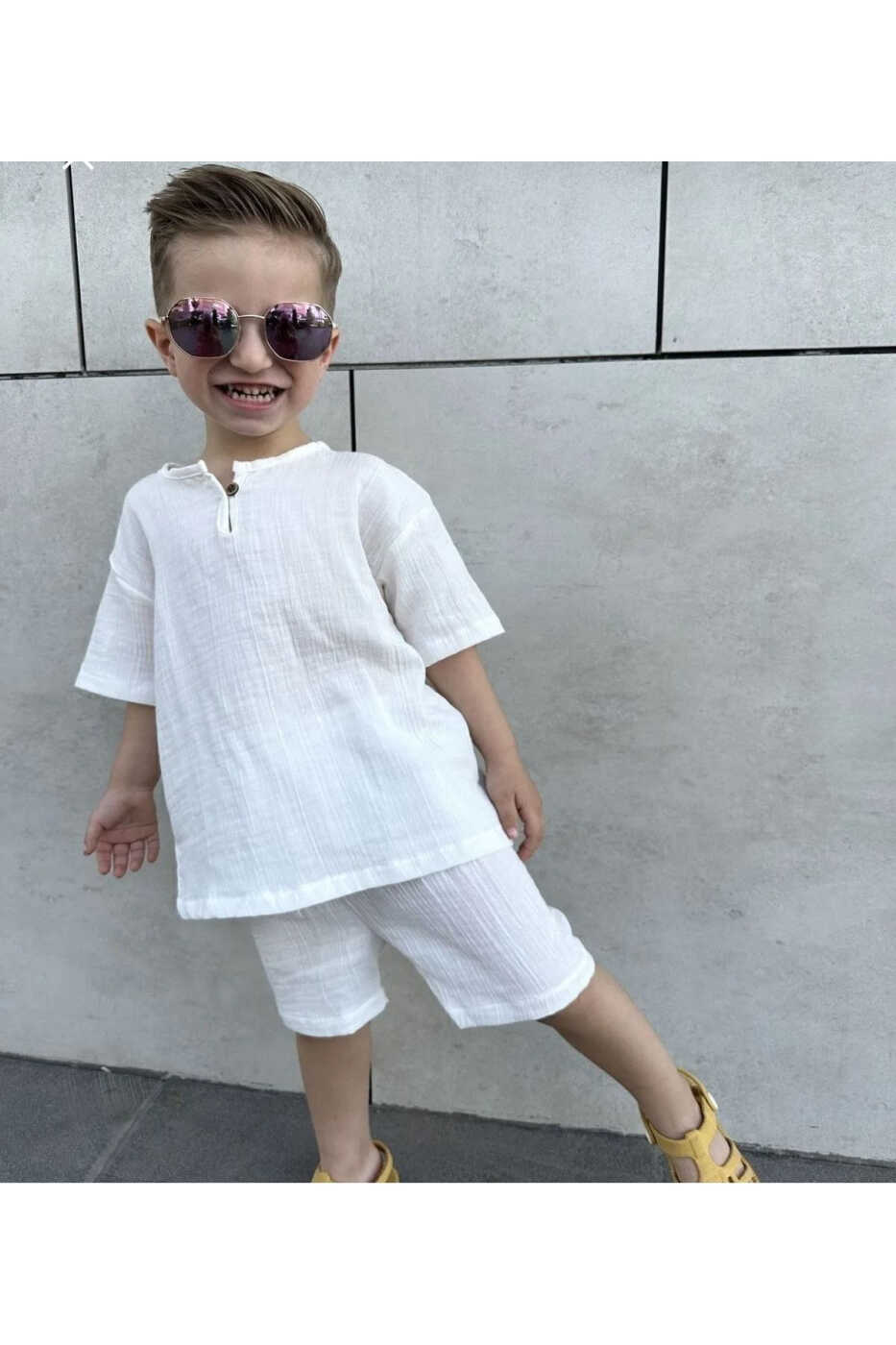 Подходит для летнего сезона, имеет полный крой и является оверсайз. Если ваш ребенок опережает своих сверстников в развитии, вы можете выбрать на размер больше. Удобный крой платья позволяет ребенку свободно двигаться и идеально подходит для игр.