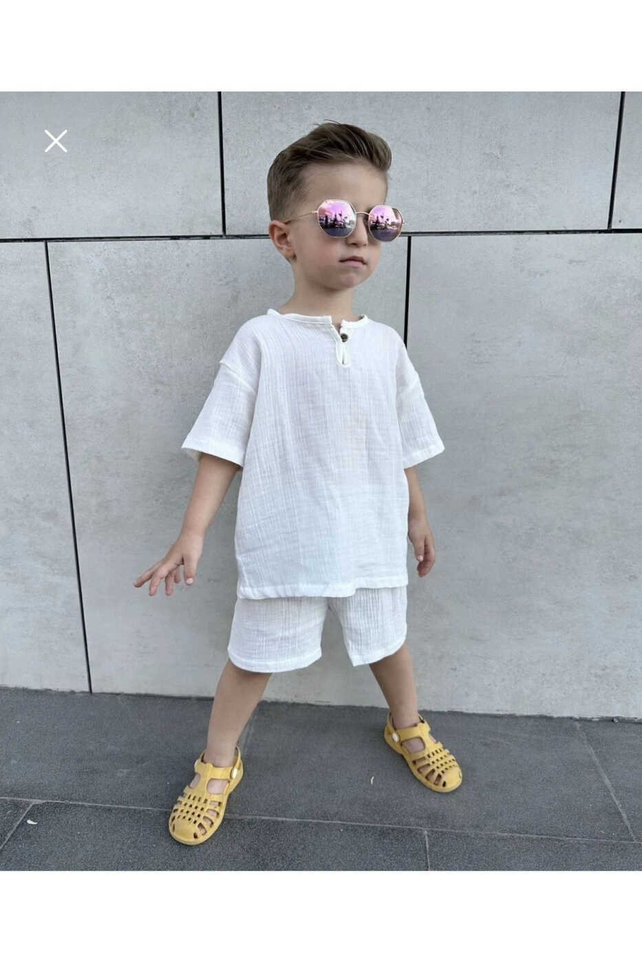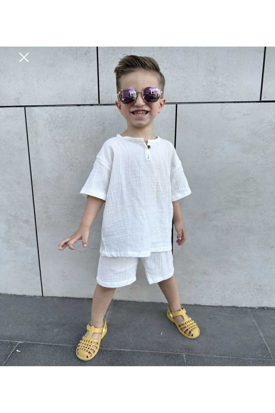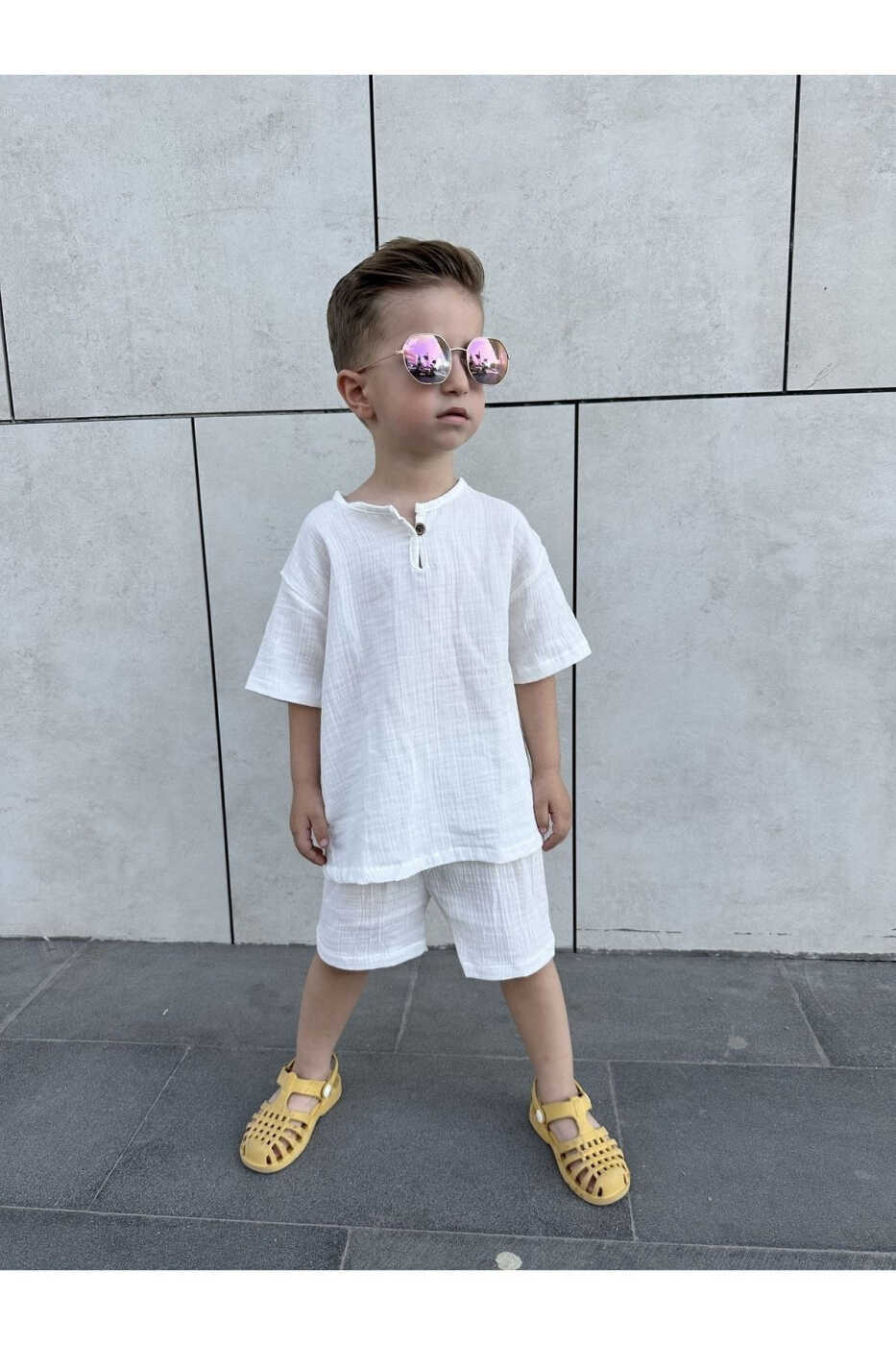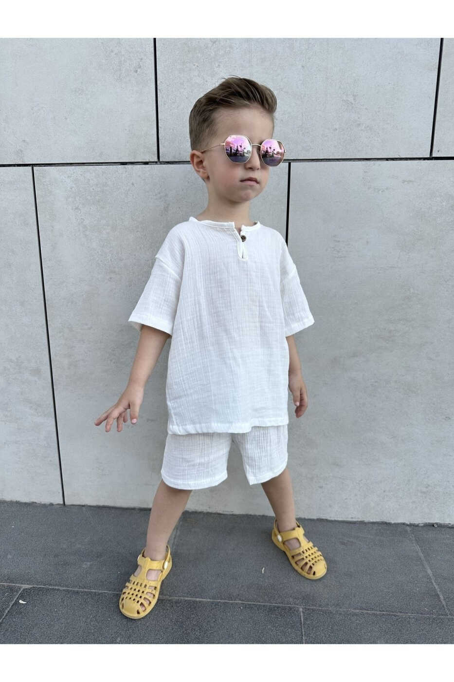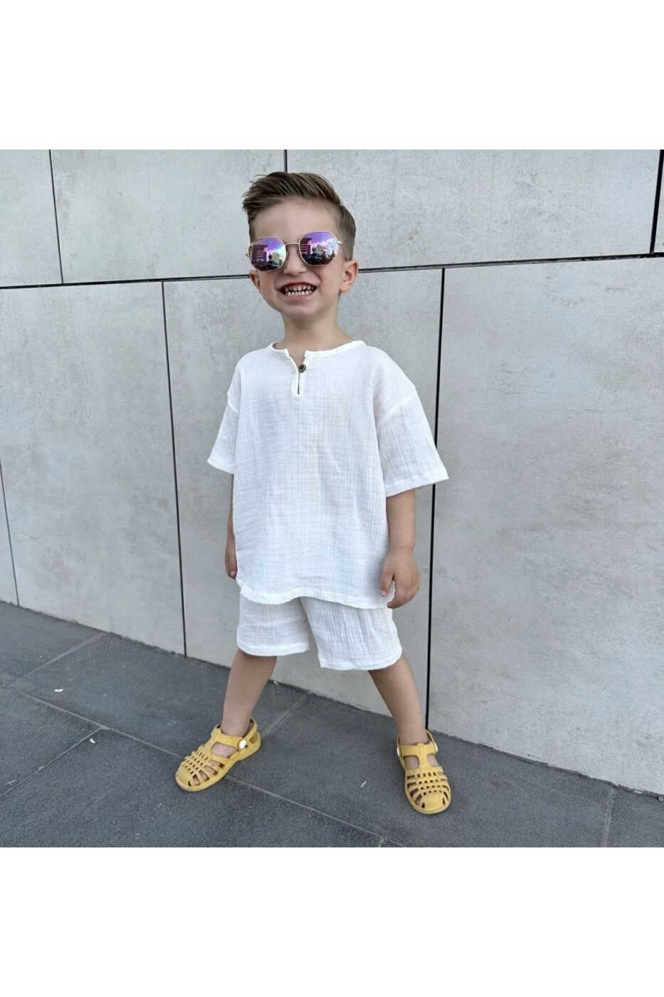 Подходит для летнего сезона, имеет полный крой и является оверсайз. Если ваш ребенок опережает своих сверстников в развитии, вы можете выбрать на размер больше. Удобный крой платья позволяет ребенку свободно двигаться и идеально подходит для игр.