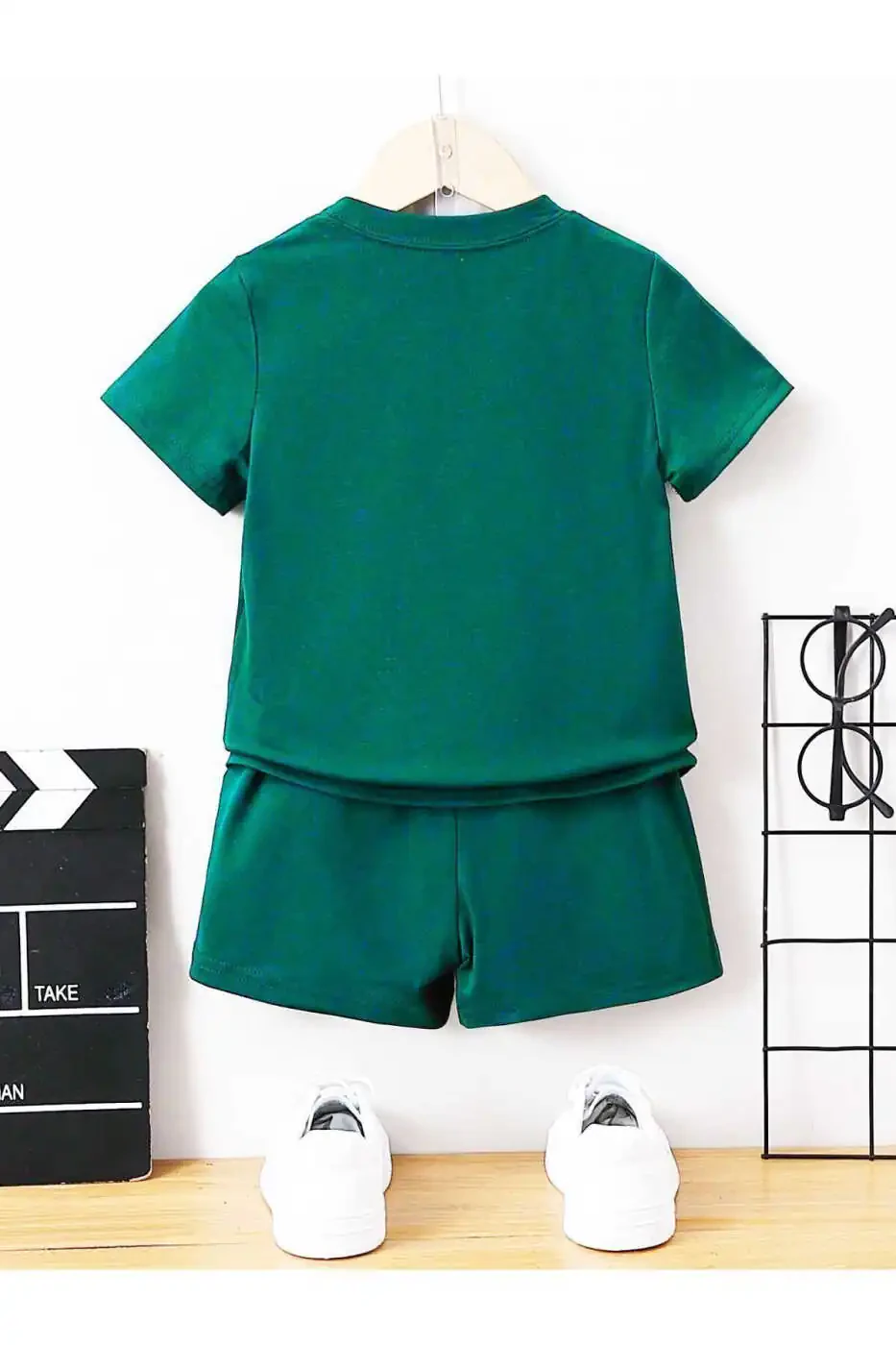 детский комплект футболка-шорты, печать лос-анджелес, оливковый цвет, летняя одежда, детская одежда, круглый вырез, удобный, стильный