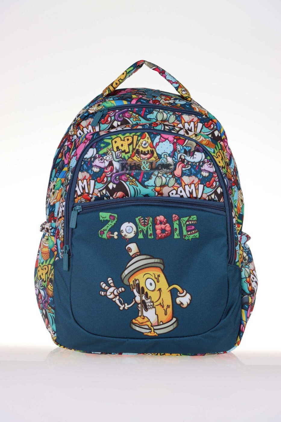 Дизайн в стиле зомби обязательно привлечет внимание детей, а рюкзак также отличается функциональностью. Просторное основное отделение предлагает достаточно места для тетрадей, книг и других школьных принадлежностей. Передний карман идеально подходит для ручек, ластиков и других мелочей. Боковые карманы обеспечивают практичное решение для бутылок с водой и других напитков.