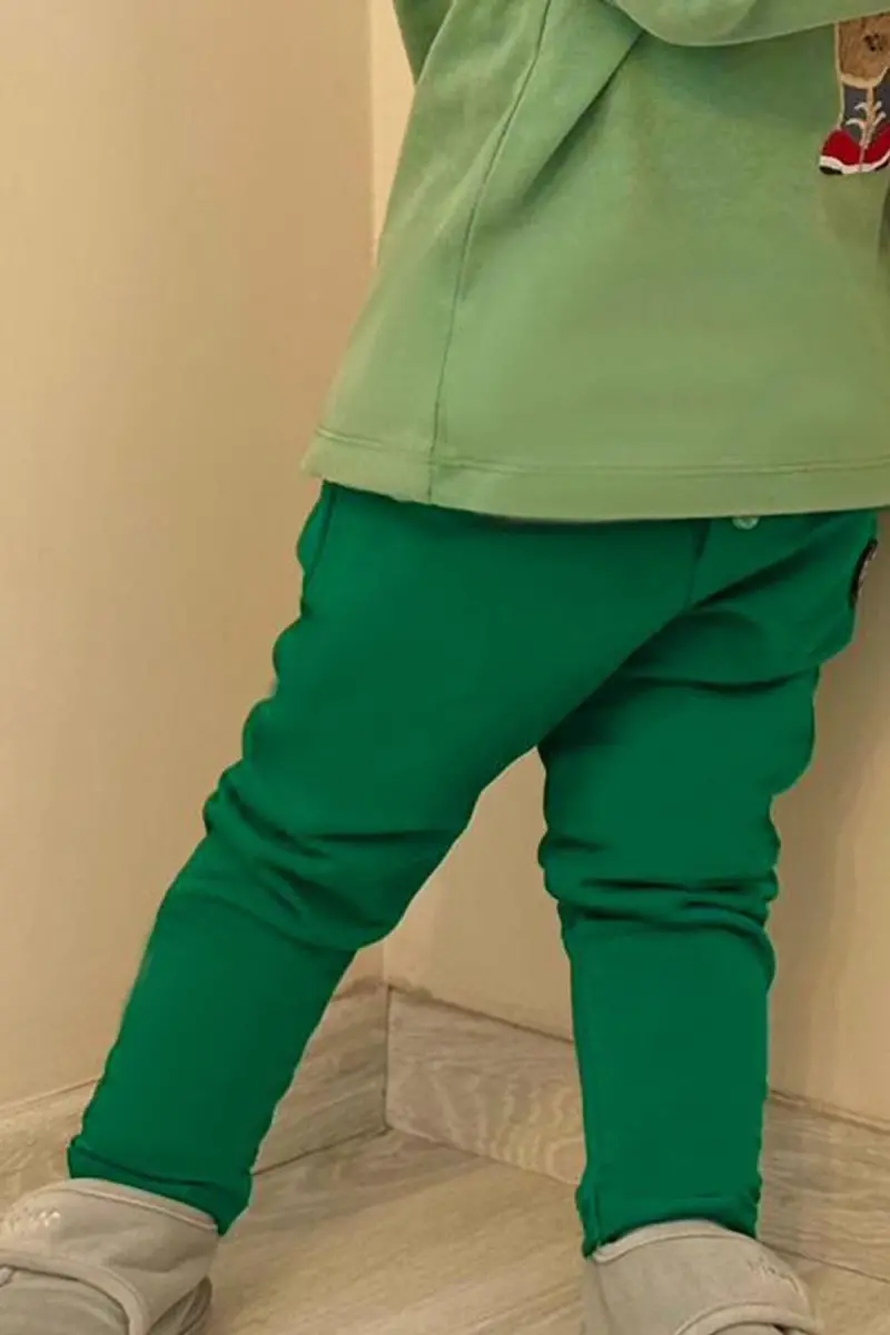 Эти милые и практичные детские штаны дополнят стиль вашего малыша своими пуговицами, карманами с накладками и зеленым цветом.