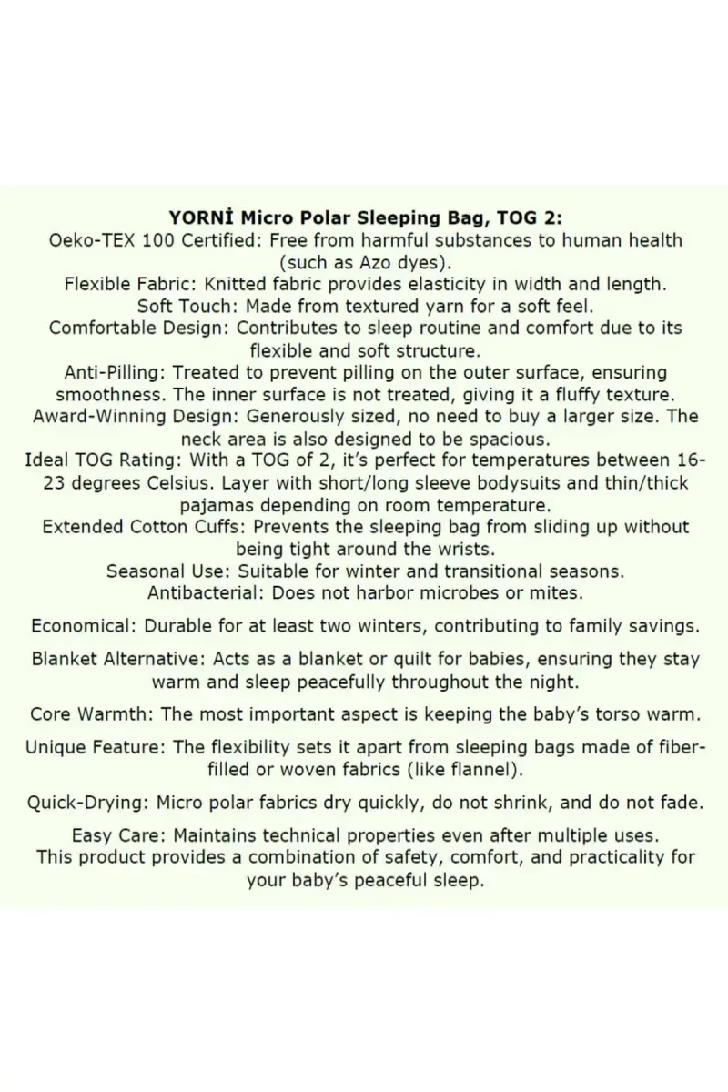 Специально разработанный для того, чтобы ваш малыш оставался в тепле и комфорте всю ночь, микрофлисовый спальный мешок Oeko-tex с его мягкой текстурой и дышащей структурой сделает сон более приятным. С показателем Tog 2 этот спальный мешок идеально подходит для весны, осени и зимы.