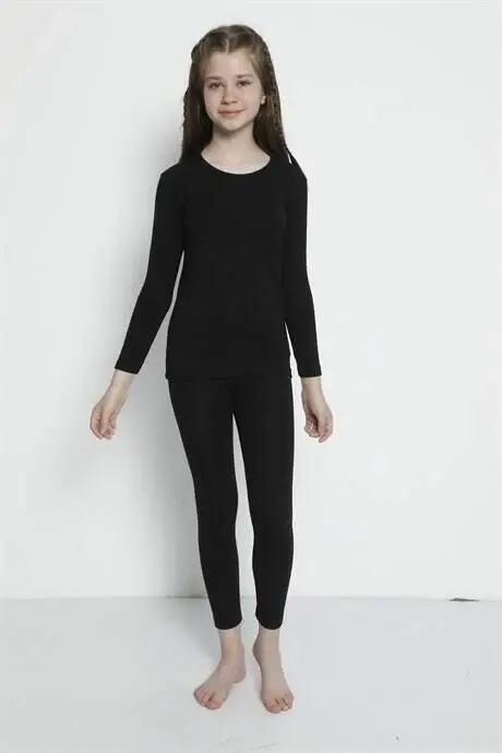 **Детский комплект термобелья черного цвета для девочек****Характеристики товара:*** Состав ткани: 47% вискоза, 47% полиэстер, 6% эластан* Обтягивающий крой для свободы движений* Мягкая текстура для комфорта и стиля* Спортивный вид* Широкий размерный ряд**Области применения:*** Незаменимый предмет гардероба для зимних месяцев* Идеально подходит для сохранения тепла тела в холодную погоду**Инструкции по уходу:*** Стирать в соответствии с инструкциями на упаковке или этикетке изделия.* Стирать наизнанку с одеждой аналогичного цвета.**Политика возврата:*** В связи с гигиеническими нормами возврат и обмен нижнего белья не принимаются.