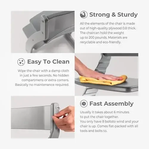 Детский деревянный стульчик Fornel для младенцев и малышей - регулируемая высота, легко моющийся детский стульчик - обеденный стульчик для детей от 3 лет до 200 фунтов, растет вместе с ребенком (серый)