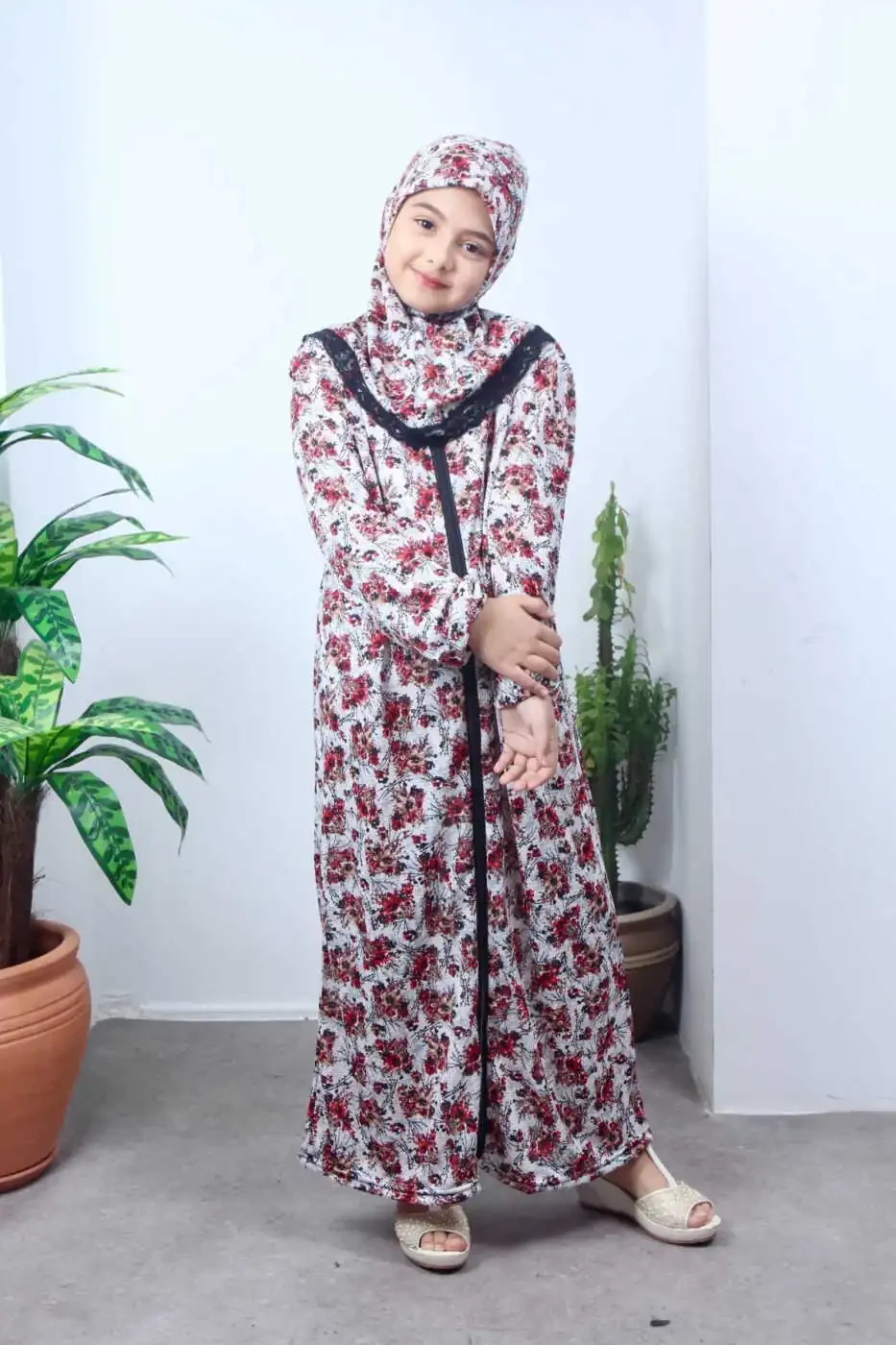 Украшенная цветочными узорами, эта ферача имеет как стильный, так и элегантный внешний вид. Ее застежка-молния, которую легко надевать и снимать, помогает детям самостоятельно совершать намаз.