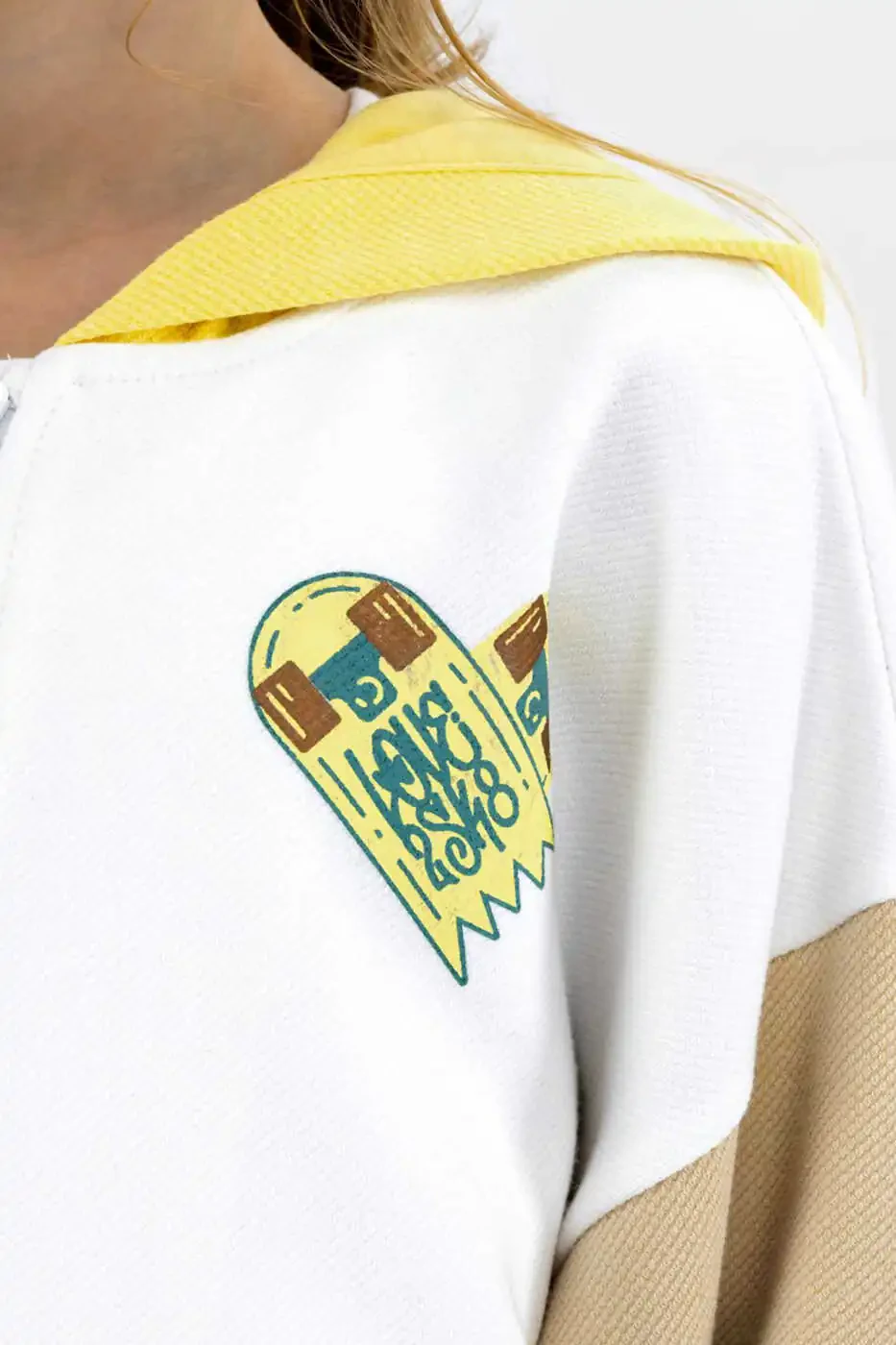 Этот белый худи с капюшоном для девочек, изготовленный из высококачественного хлопкового материала, обеспечивает комфортное ношение в течение всего дня. Специально подобранная дышащая ткань, нежная к коже детей, предотвращает потоотделение и обеспечивает свежесть в течение всего дня. Капюшон худи защищает голову в холодную погоду, а также выделяется как стильная деталь. Карман-кенгуру спереди идеально подходит для переноски мелких вещей. Этот худи с манжетами и подолом в рубчик плотно прилегает к телу и не ограничивает свободу движений. Белый цвет легко сочетается с любой нижней одеждой, что делает его универсальной вещью. Сочетайте ли вы его с джинсами, спортивными штанами или юбкой, ваш ребенок всегда будет выглядеть стильно и комфортно. Детский белый худи с капюшоном не только выглядит стильно, но и обеспечивает длительный срок службы благодаря своей прочной конструкции. Этот продукт, устойчивый к частой стирке, сохраняет свои цвета и форму в течение длительного времени. Принты и швы на нем выполнены в соответствии с высокими стандартами качества, что позволяет изделию долго выглядеть как новым. Этот худи разработан таким образом, чтобы соответствовать активному образу жизни детей. Играя, бегая, прыгая или просто отдыхая, ваш ребенок будет чувствовать себя комфортно и свободно. В то же время, благодаря своему стильному и современному дизайну, его можно легко носить на особые случаи или мероприятия. Детский белый худи с капюшоном - идеальный выбор как для повседневной носки, так и для особых случаев. С этим худи ваш ребенок будет чувствовать себя комфортно и ослеплять своей элегантностью. Этот продукт, который станет одной из самых любимых вещей в ее гардеробе, понравится и вашей девочке, и вам. Помните, этот худи - не просто одежда, это друг, который повысит уверенность вашего ребенка и будет сопровождать его в течение всего дня.