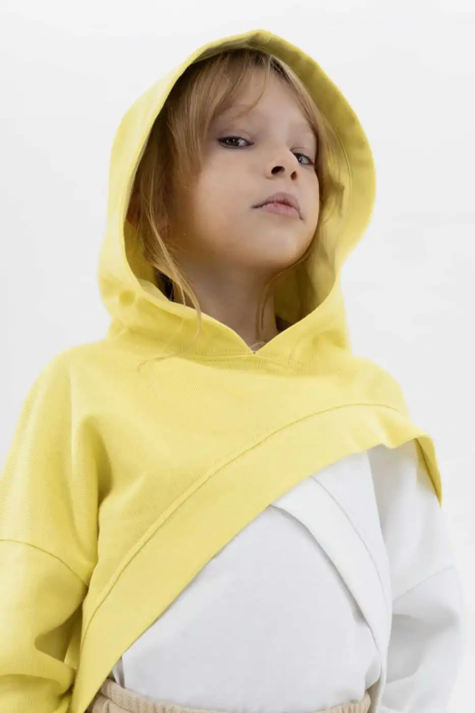 Идеальное сочетание моды и комфорта - Жёлтый асимметричный свитшот для девочки, предлагающий сочетание стиля и удобства для вашей маленькой принцессы. Выделяющийся ярким жёлтым цветом и асимметричным дизайном, этот свитшот обеспечивает стильный вид как для повседневных занятий, так и для особых случаев. Благодаря мягкой и дышащей ткани, этот свитшот заботится о коже вашего ребенка, обеспечивая комфорт и свободу движений. Прочная работа и привлекательный дизайн гарантируют длительное использование, и этот свитшот станет незаменимой частью гардероба вашего ребенка. Идеальный выбор для девочек, желающих выглядеть стильно и модно, этот свитшот прекрасно сочетается с любой одеждой. Если вы хотите, чтобы вы и ваш ребенок чувствовали себя особенными, выберите этот асимметричный жёлтый свитшот! Этот свитшот, отражающий стиль вашей дочери, сочетающий в себе комфорт и свободу движений, демонстрирует безупречное сочетание стиля и комфорта.
