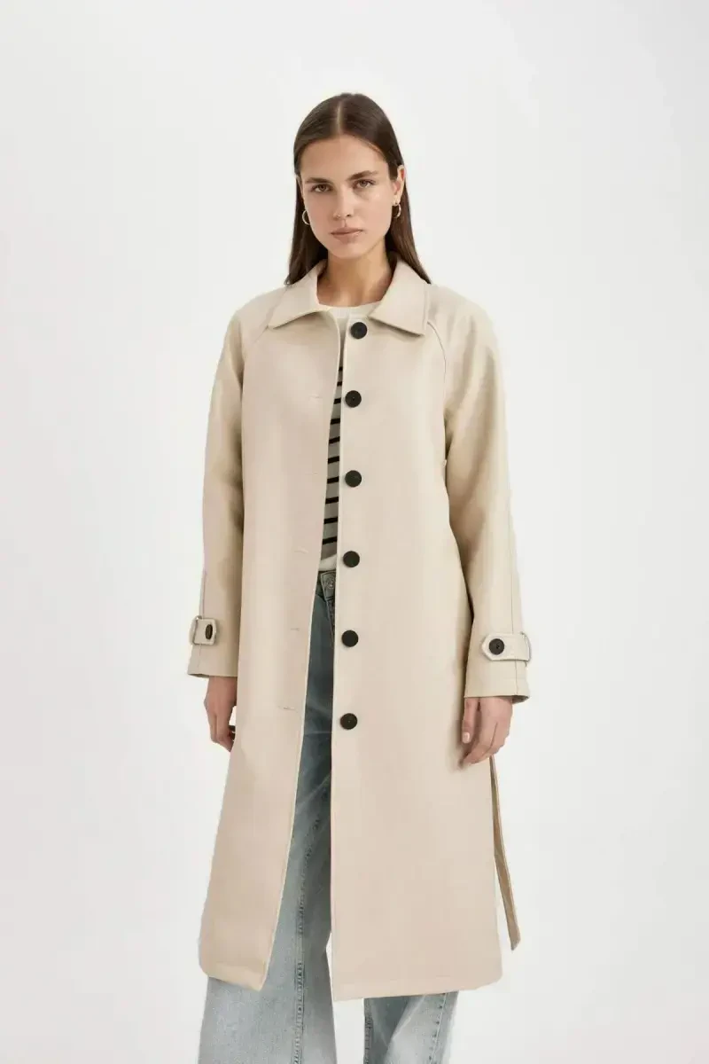 DFC palto-trençkot, sunʼiy teri palto-trençkot, regular fit palto-trençkot, zamonaviy palto-trençkot, qulay palto-trençkot