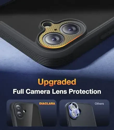 iPhone 16 Plus g‘ilofi, Diaclara, maxfiylik ekran himoyachisi, kamera himoyasi, simsiz zaryadlash, shaffof tampon, qora g‘ilof, to‘liq tana himoyasi, chizilishga chidamli, umrbod kafolat