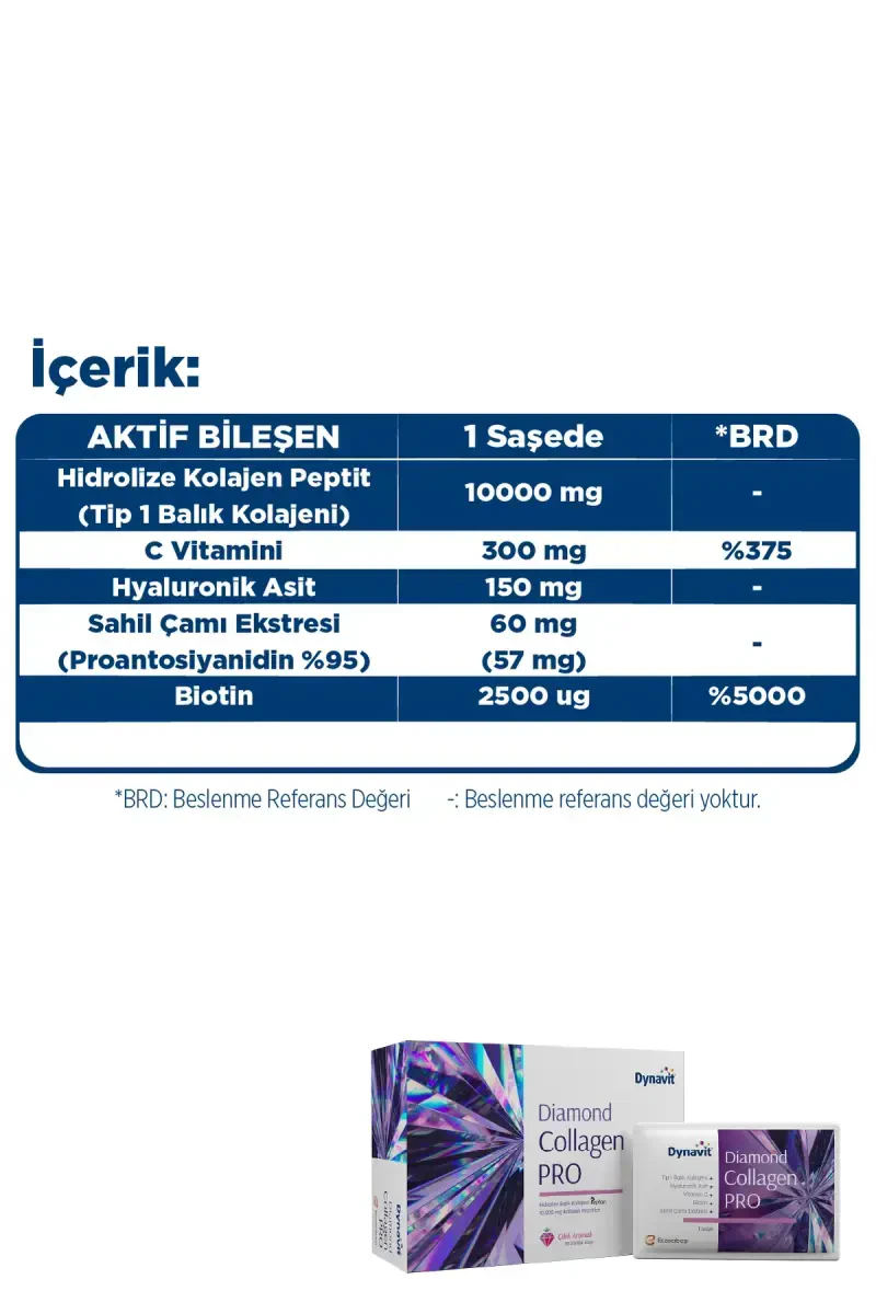 Diamond Collagen Pro 30 Sachets is designed for practical and delicious use. Each sachet is enriched with high-quality hydrolyzed collagen and other nutritious ingredients. You can rediscover your skin's youthfulness and radiance by consuming one sachet a day.