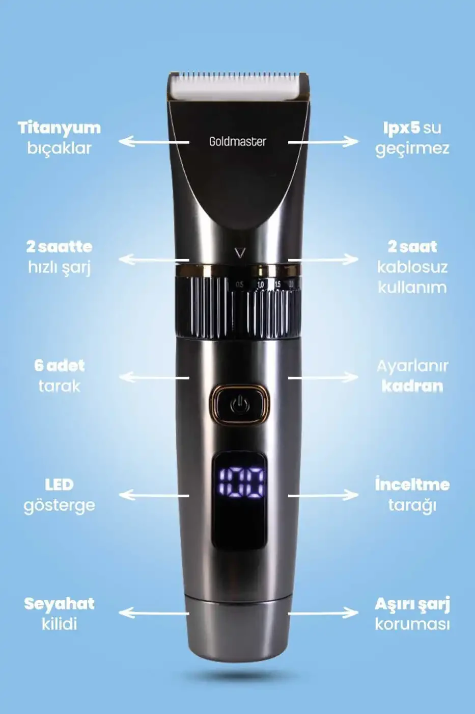 Bu ürün Goldmaster Fırsat ürünleri tarafından gönderilecektir.Kampanya fiyatından satılmak üzere 100 adetten fazla stok sunulmuştur.İncelemiş olduğunuz ürünün satış fiyatını satıcı belirlemektedir.Bir ürün, birden fazla satıcı tarafından satılabilir. Birden fazla satıcı tarafından satışa sunulan ürünlerin satıcıları ürün için belirledikleri fiyata, satıcı puanlarına, teslimat statülerine, ürünlerdeki promosyonlara, kargonun bedava olup olmamasına ve ürünlerin hızlı teslimat ile teslim edilip edilememesine, ürünlerin stok ve kategorileri bilgilerine göre sıralanmaktadır.Bu üründen en fazla5 adet sipariş verilebilir.5 adedin üzerindeki siparişleri Trendyol iptal etme hakkını saklı tutar.Belirlenen bu limit kurumsal siparişlerde geçerli olmayıp, kurumsal siparişler için farklı limitler belirlenebilmektedir.15 gün içinde ücretsiz iade. Detaylı bilgi için[page="return_conditions"]tıklayın .- Saç ve sakal tıraş ihtiyaçlarınızı tek bir cihazla karşılamak için tasarlanmış, çok yönlü kullanım sunan Diego gm9103 tıraş makinesi- Islak ve kuru kullanım özelliği sayesinde her koşulda kesintisiz tıraş imkanı sağlar- 3 saat ve altı şarjlı kullanım süresi ile kesintisiz tıraş deneyimi yaşatır- Şarjlı yapısı sayesinde kablosuz özgürlük ve rahatlık sunar