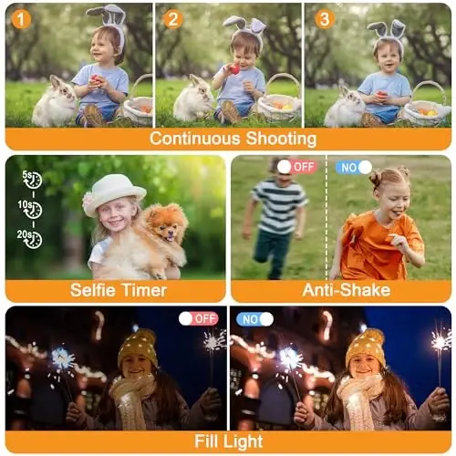 64MP & 4K Digital Camera: Compact cameras has a mighty 64 MP photo and the video resolution can reach up to 4K at 30 FPS, enabling you to capture incredibly clear videos and photos. The point and shoot digital camera also doubles as an MP3 player for your favorite tunes! 18X Zoom & Autofocus: This white digital camera kids features a 2.4-inch screen and 18X digital zoom. With the W/T button, you can easily zoom in or out while taking photos or recording videos—perfect for capturing both close-up details and distant scenes. The built-in autofocus ensures your images are sharp, clear, and full of detail. Multi-Function Portable Camera: Packed with versatile features like 8 filters, a flashlight, timer photo, auto photo, and more. While recording, simply press the power button briefly to pause the video—perfect for switching your shooting subject. Press it again to resume and keep capturing every moment. Webcam & Vlogging: As a portable vlogging camera for kids, it provides ease of use for live streaming and webcasting. Connecting it to the PC via a USB cable allows you to enjoy video calling or live streaming on YouTube or TikTok. The convenience of USB charging and file transfer, along with webcam capability, suitable for photography, vlogging, and social media sharing. Portable & Easy to Use: Smaller than a smartphone, this compact camera 4K fits easily in your pocket or backpack. Weighing just 0.25 lb, it's perfect for everyone to take along and use—great for kids, beginners, students, and even the elderly. The teens camera is a perfect Christmas, birthday and holiday gift for kids, boys and girls.