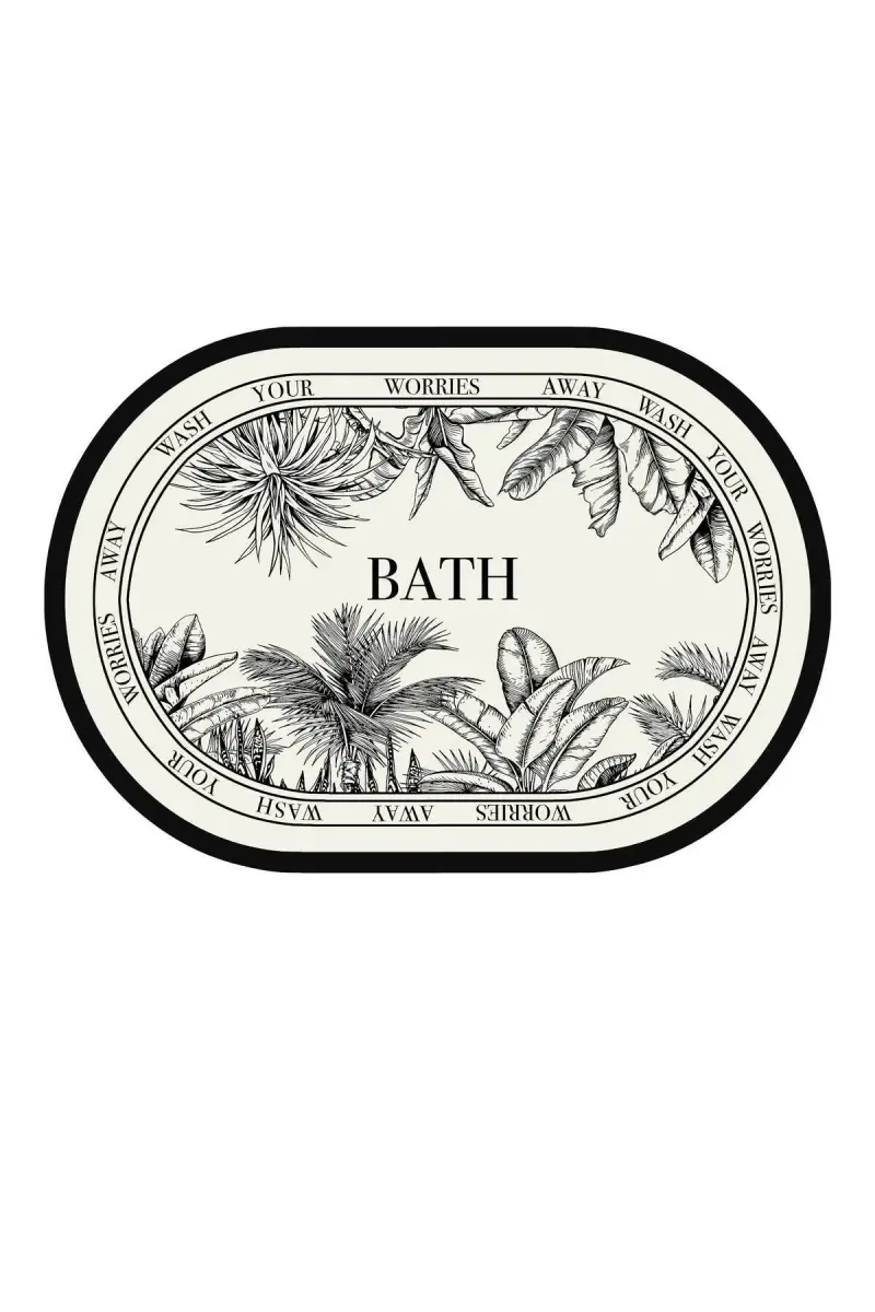 Black and White Botanical Bath Mat Set - Non-Slip, Washable