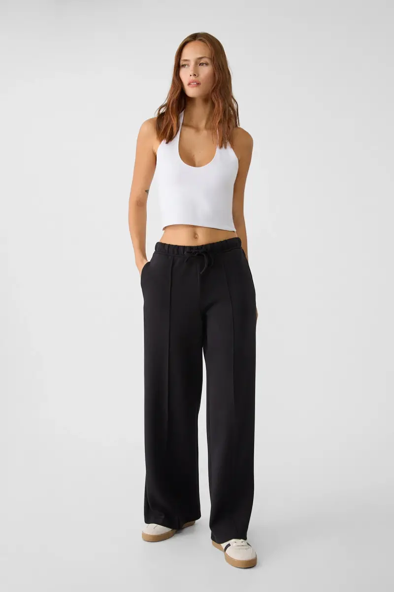 Bu ürün Stradivarius tarafından gönderilecektir.Kampanya fiyatından satılmak üzere 10 adetten fazla stok sunulmuştur.Bir ürün, birden fazla satıcı tarafından satılabilir. Birden fazla satıcı tarafından satışa sunulan ürünlerin satıcıları ürün için belirledikleri fiyata, satıcı puanlarına, teslimat statülerine, ürünlerdeki promosyonlara, kargonun bedava olup olmamasına ve ürünlerin hızlı teslimat ile teslim edilip edilememesine, ürünlerin stok ve kategorileri bilgilerine göre sıralanmaktadır.Bu üründen en fazla 10 adet sipariş verilebilir. 10 adedin üzerindeki siparişleri Trendyol iptal etme hakkını saklı tutar. Belirlenen bu limit kurumsal siparişlerde geçerli olmayıp, kurumsal siparişler için farklı limitler belirlenebilmektedir.15 gün içinde ücretsiz iade. Detaylı bilgi için [page="return_conditions"]tıklayın .Modelin boyu: 175 cm.Modelin bedeni: SModal karışımlı kumaşlı, çok yumuşak dokulu, beli lastikli ve uyumlu renkte ayarlanabilir büzgü ipli, yan cepli, önü dikiş detaylı, orta bel, straight fit, geniş paça pantolon.Farklı renkleri mevcuttur.49% modal - 41% polyester - 10% elastan110ºC DERECEDE ÜTÜLEME - KURU TEMİZLEME YAPILAMAZ - 30ºC DE MAKİNADA HASSAS YIKAMA - BEYAZLATICI KULLANILMAZ - MERDANELI TEMIZLEME YAPILAMAZ