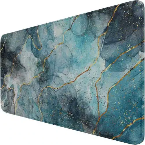 Large Gaming Mouse Pad with Stitched Edges, (31.5X15.7In) Durable Non-Slip Natural Rubber Base, Waterproof Computer Keyboard Pad Mat for Esports Pros/Gamer/Desktop/Office/Home- Marble Blue
