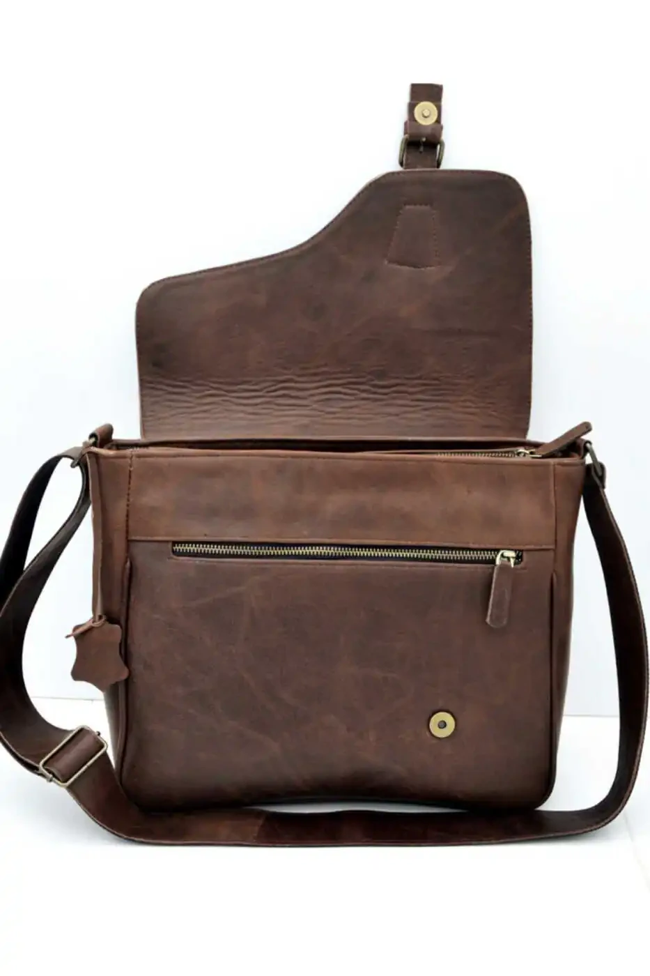 Combining style and practicality, this vintage brown multi-pocket genuine leather messenger & briefcase will help you reflect your style in your business life and everyday life. Made from high-quality genuine leather, the bag stands out with its timeless durability and stylish appearance.