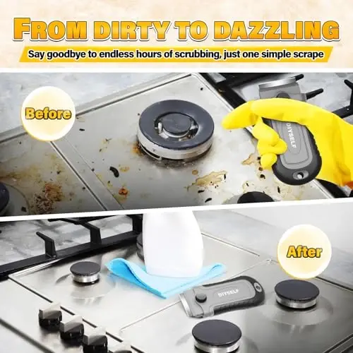 Ushbu qirg'ich to'plami shisha, keramika, metall va boshqa yuzalardagi yorliqlar, yopishqoq qoldiqlar, bo'yoq va boshqa qaysar kirlarni tozalash uchun idealdir. Zaxira pichoqlar uzoq muddatli foydalanishni ta'minlaydi va pichoqni almashtirishni osonlashtiradi. Iltimos, ishlatishdan oldin foydalanish qo'llanmasini o'qing va xavfsizlik choralariga rioya qiling.