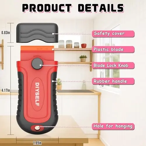 The DIYSELF 2-Piece Plastic Scraper and 10 Replacement Blade Label Remover Set (Red) simplifies your cleaning tasks with its durable construction and versatile use. The product is made of high-quality materials and is long-lasting. The spare blades in the set extend the life of the scraper and provide you with a long-term cleaning solution. Its ergonomic design provides a comfortable user experience and makes your cleaning tasks more enjoyable.
