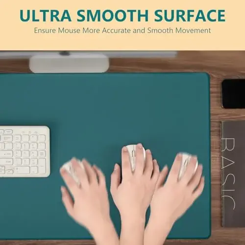 31.50"x15.75" Extented Size: The large size gives you ample of room to fit your mouse, keyboard, and laptop and other desk items. Perfect for those bothered by constantly having to move the mouse and pick it up and replace it. Stay-Put Natural Rubber Base: Natural rubber material prioritizes both your health and the environment while ensuring prolonged durability. Say goodbye to sliding mouse pads. Our design features a textured non-slip rubber base that ensures your pad remains firmly anchored to your desk, offering stability during intense gaming sessions or daily tasks. Durable Stitched Edges: Crafted to last, our mouse pad comes with durable stitched edges, preventing fraying and ensuring consistent performance. Trust in a product that's built for longevity. Smooth, Accurate Glide: Enjoy swift mouse movements with pinpoint accuracy on our mouse pad's smooth surface. Waterproof and Easy-to-Clean Surface: Cleaning is hassle-free; simply wipe with a cloth as needed and get back to your tasks or gaming sessions. Sleek Design: Plain color finish with no distracting logos or patterns ensures a clean and professional look for any workspace. Enjoy a minimalist and professional aesthetic and just plain uninterrupted style.