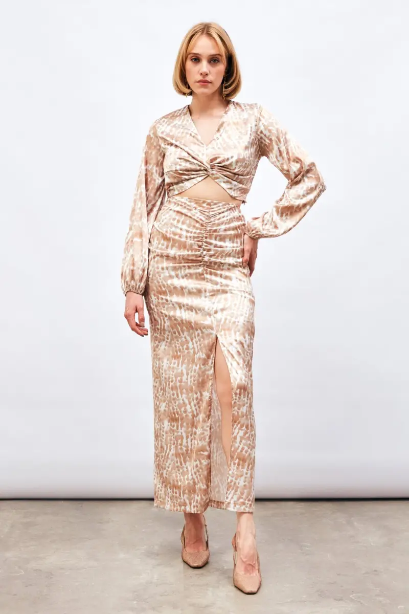 Длинная юбка с разрезом и узором подчеркнет вашу красоту благодаря своим стильным и элегантным деталям.