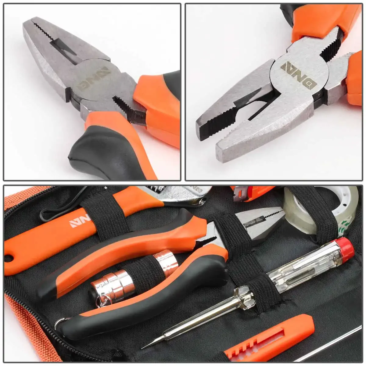 With the DNA Motoring TOOLS-00032, all the essential tools you might need at home, in the office, or in your workshop come together in one set. This 18-piece professional repair tool set is an indispensable aid for your daily use and home maintenance tasks. Thanks to various hand tools such as pliers, adjustable wrench, utility knife, hexagon wrench set, and screwdriver, you can easily perform many different repair and assembly jobs. Our wrench, with its ergonomic design and non-slip rubber-coated handles, provides comfort even during long-term use. Made of high-quality chrome vanadium steel, these tools offer durability and longevity. All these 18 pieces of tools can be neatly stored in a special storage bag that is easy to carry and saves space. The carrying handle on the bag allows you to easily take the set wherever you want. DNA Motoring TOOLS-00032 is an excellent option for college students, those looking for Father's Day gifts, newlyweds, or anyone interested in do-it-yourself projects. With this set, you can successfully complete many different tasks, from simple repairs to complex assembly processes. The LED flashlight included in the set helps you when working in dark environments, while the electrical test pen allows you to detect problems in electrical circuits. Auxiliary tools such as transparent adhesive tape and scissors also increase the practicality of the set. Make your work easier and save time with DNA Motoring TOOLS-00032. Whether you are an amateur or a professional, this set will meet all your needs and will serve you for many years. This product, which is 100% new and of high quality, stands out with its durability and usability.