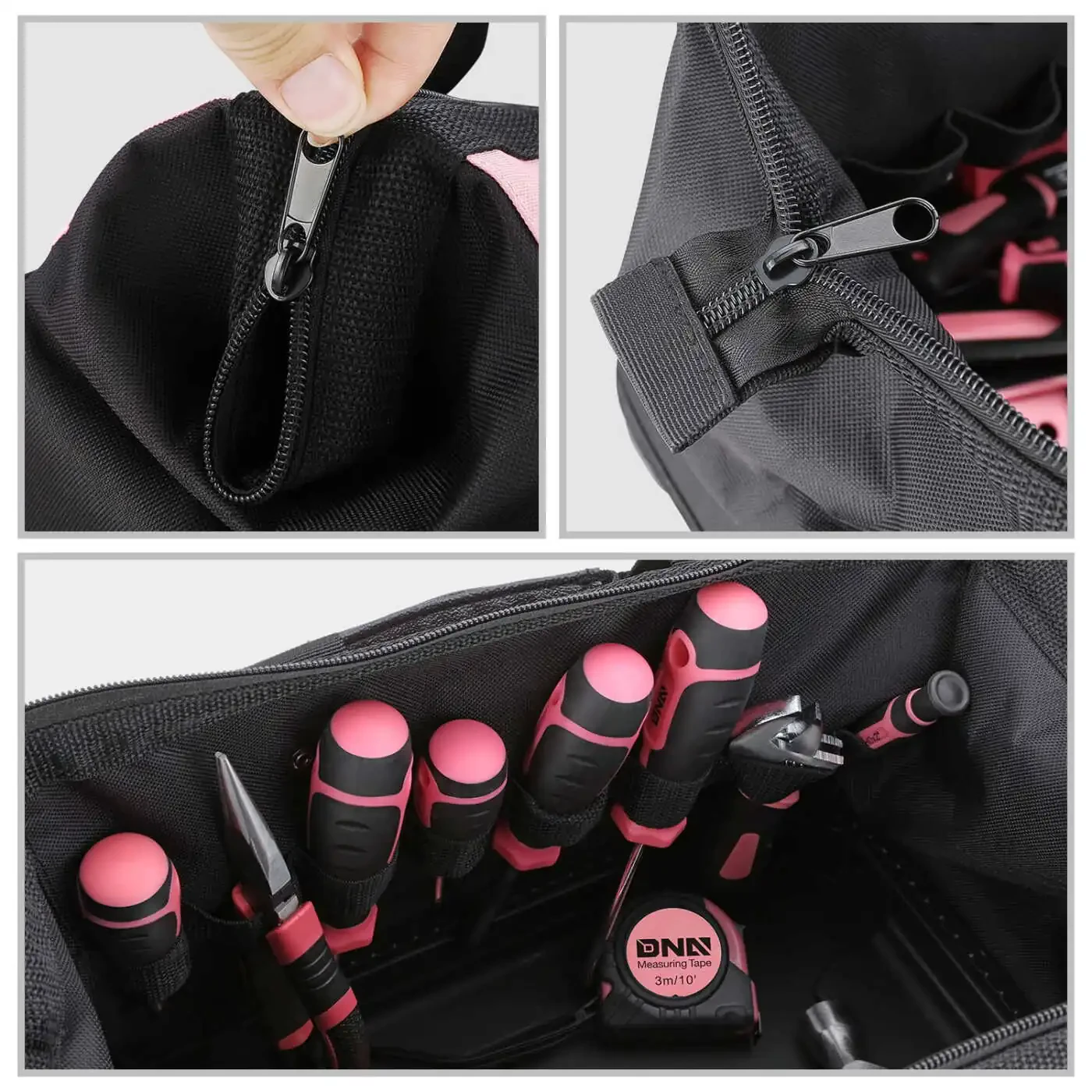 Tüm aletler, kolay saklama için bir kanvas çantada paketlenmiştir. Dayanıklı kumaş, aletlerinizin yüküne dayanabilir. Geniş bir açıklık tasarımı, aletlerinizi kolayca saklamanıza, düzenlemenize ve çıkarmanıza olanak tanır. Çelikten dövülmüş ve yüksek parlak kromla kaplanmıştır. Rahat kullanım için kaymaz saplara sahiptir.