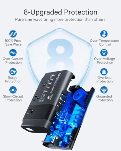 DOACE 220v - 110v Voltage Converter is a high-performance solution designed to allow you to safely use your American devices during your European travels. With a maximum power of 500W, this pure sine wave converter provides a seamless transition from Europe to America (220V to 110V), making it an indispensable travel companion for your international travels. This adapter, which attracts attention with its stylish black design, not only converts voltage but also protects your devices. The DOACE voltage converter extends the life of your devices while providing an uninterrupted experience during your travels. Thanks to its protection against electrical surges, it prevents damage to your sensitive electronic devices. Moreover, it offers the possibility to charge multiple devices at the same time thanks to its 7 charging ports (3 sockets and 4 USB). It is equipped with 2 PD 20W fast charging USB-C ports and 2 QC 18W fast charging USB-A ports. This way, you can quickly charge your phones, tablets and other USB devices. USB outputs are fully isolated from AC power for safe device use. In DOACE's 2025 protection design, there are low voltage, high voltage, over temperature, overload, over current and short circuit protections. In case of overload, the switch turns off to protect devices from damage and warns about overload. You can reactivate it after waiting for the converter to cool down. Thanks to its compact size (6.3✖4✖1.57 inches/1.4 pounds) and 4 meter power cable, it is easy to carry and use. The DOACE voltage converter kit includes 1 European power cable and 4 international adapters (Type I, E/F, G, A, L). This allows you to use your devices in more than 160 countries such as France, Germany, England, Europe, Italy, Australia, Japan, China. You can even use it as a power strip in America. DOACE Travel Converter provides pure sine wave power, which is a quieter, cleaner and more reliable power source than what you use at home. Electronic devices (laptops, phones, etc.) need a pure sine wave to function normally, minimize potential voltage fluctuations, and protect their batteries. Laptops charged with pure sine waves have an average lifespan 50% longer than other wave voltages. It is also better to use a pure sine wave converter for medical equipment such as sleep apnea devices (CPAP). Some CPAP devices warn that they may be damaged by a modified sine wave converter, while others state that the CPAP will work, but the humidifier unit may be damaged. The DOACE converter is a safe, versatile and high-performance solution you can rely on during your travels.