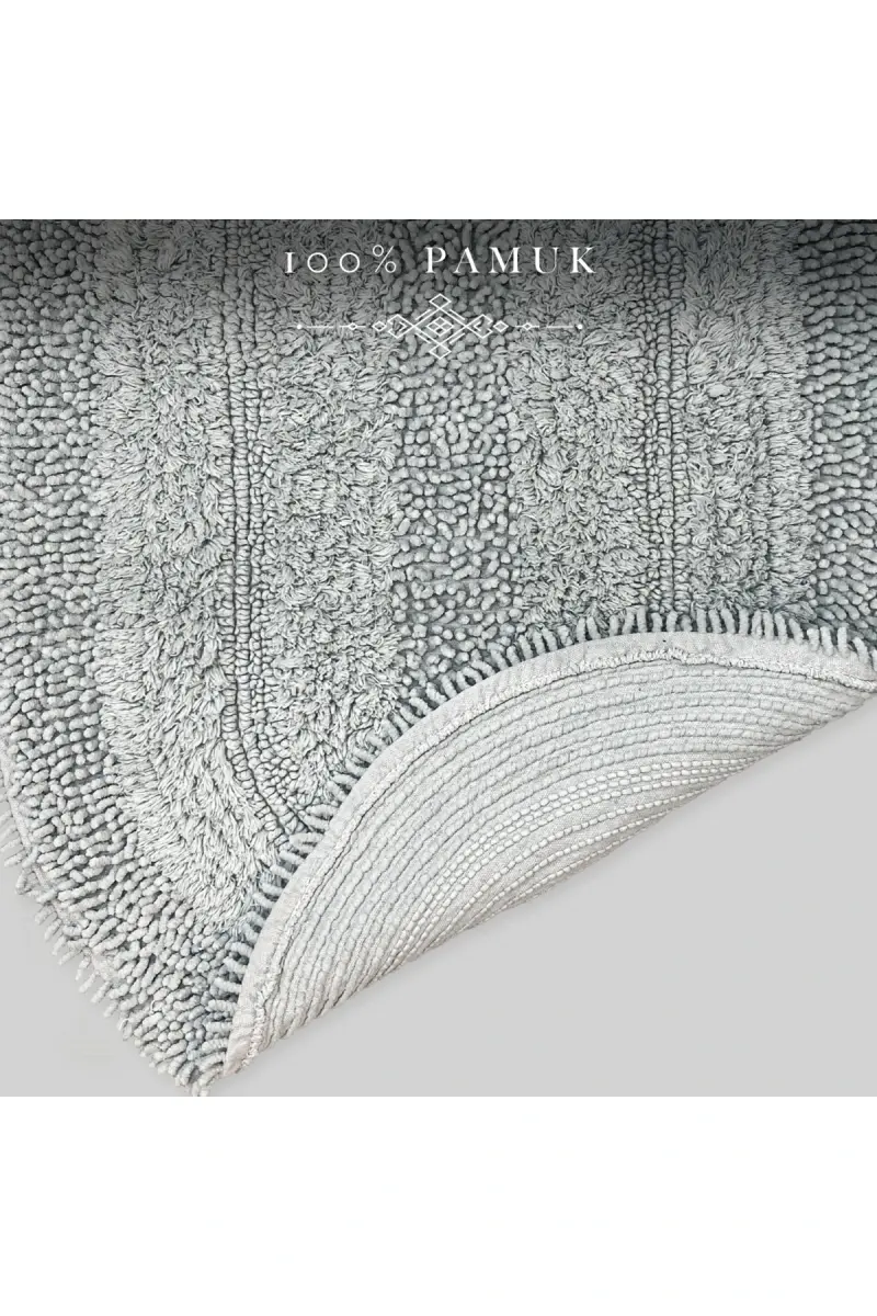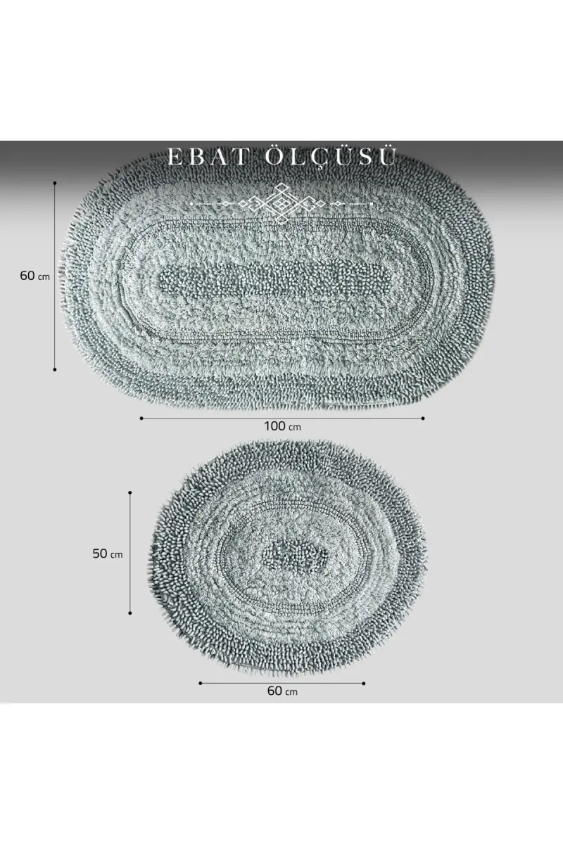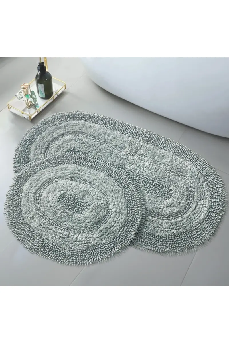 Doğal Pamuklu Spagetti Oval Mint 2'li Banyo Paspası Seti Banyo Halısı Klozet Takımı-Su Yeşili