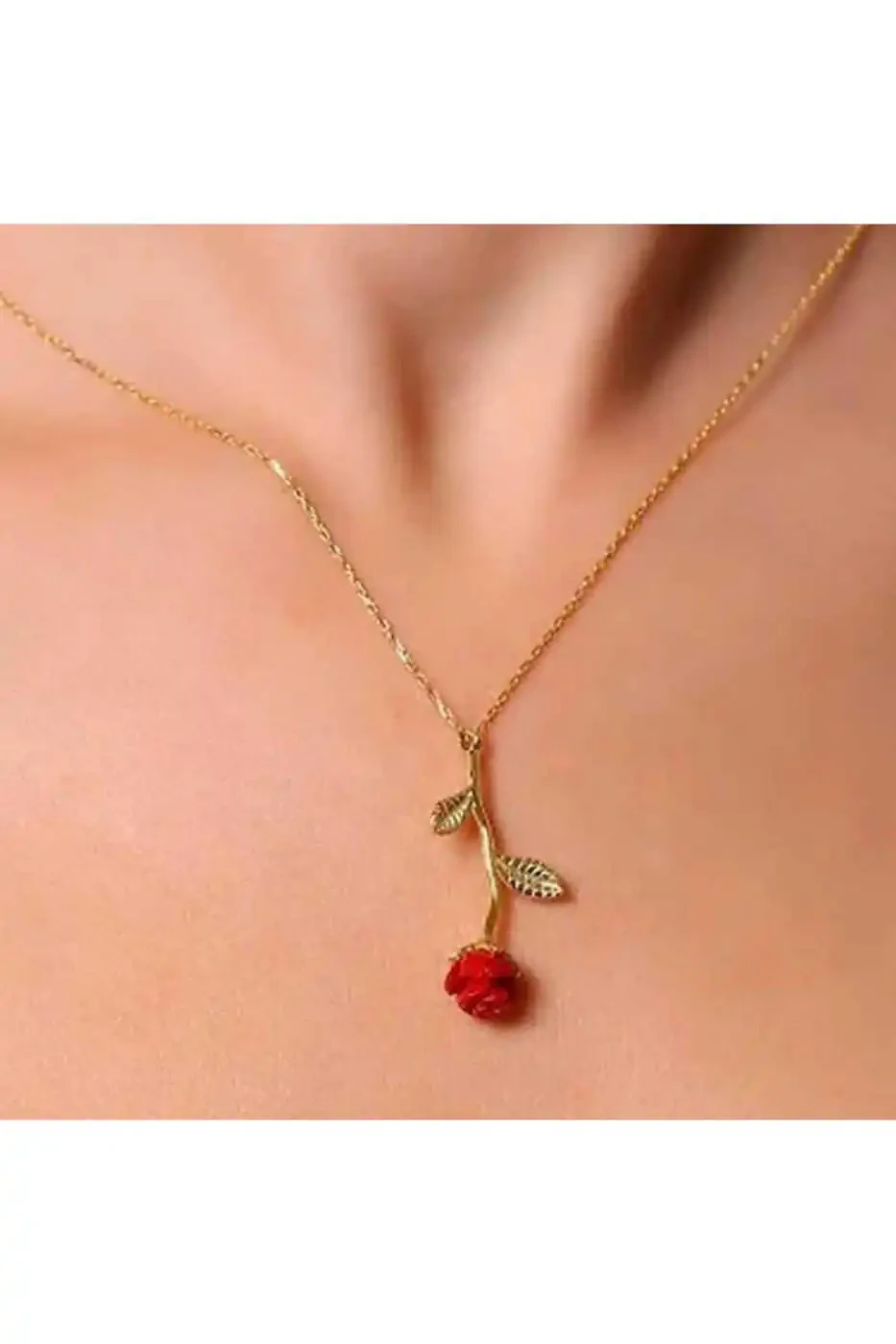 The elegant gold rose necklace is a perfect way to keep a rose, a symbol of love and beauty, forever. This necklace is a special gift option that will allow loved ones to remember you every moment. Its high-quality material and stylish design ensure it can be used for years to come.