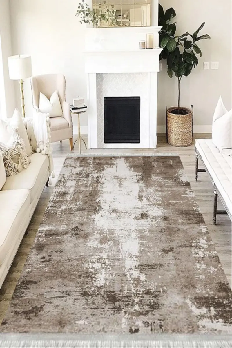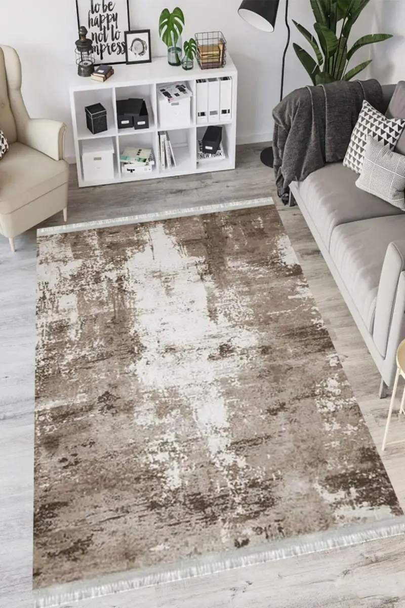 Doku Eko Punto Kaymaz Tabanlı Yıkanabilir Antibakteriyel Dijital Baskı Doku Halı Yolluk-KAHVERENGİ