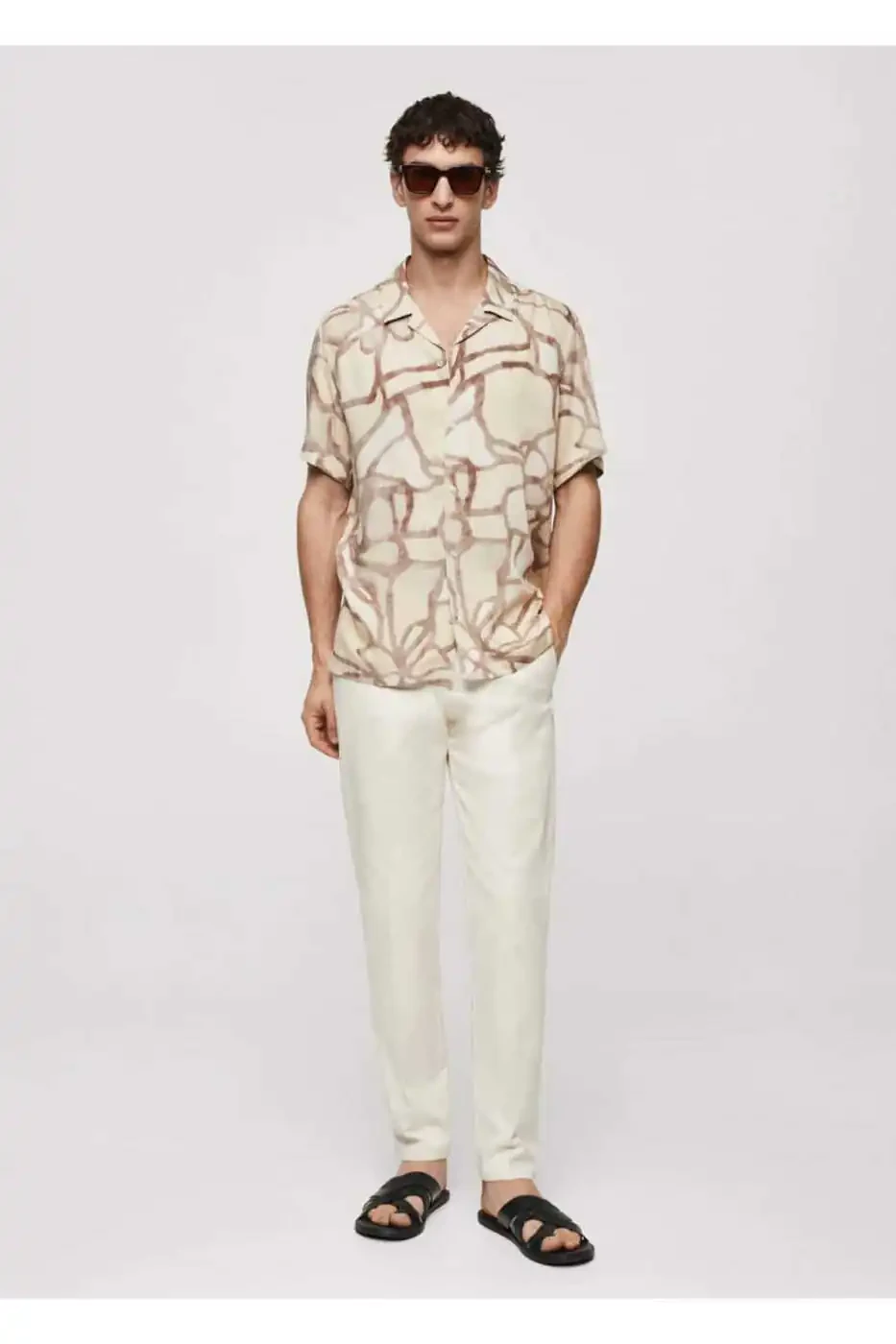 **Printed Bowling Collar Casual Shirt**Shipped by Trendyol, this product offers all-day comfort with its soft viscose material. The tulle weave type provides lightness and breathability, keeping you cool during the summer months. It can be easily cleaned according to the Type 1 washing instructions, ensuring your shirt remains as good as new.The regular fit offers a comfortable wear while conforming to your body lines. The short sleeve design provides coolness and freedom of movement during the summer months. The plain pattern creates a simple and stylish look that can be easily paired with various accessories. The buttoned detailing adds a modern and elegant touch, giving your shirt a sophisticated look.With its standard length, it suits all body types, and different size options are available. The textile material promises durability and long-lasting use. It has a wide range of users with its design that appeals to all age groups.**Features:*** **Material:** 100% viscose* **Style:** Casual* **Collar:** Bowling* **Pattern:** Plain* **Sleeve:** Short* **Fit:** Regular* **Length:** Standard* **Size Options:** Available* **Care:** Follow Type 1 washing instructions* **Delivery:** Shipped by Trendyol* **Campaign:** Less than 5 items in stock* **Order Limit:** 10 items* **Return:** Free return within 15 days