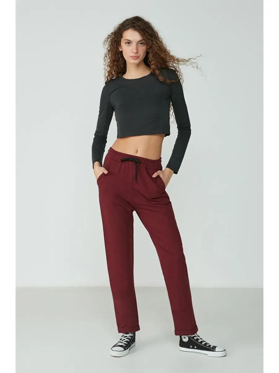 Double Cuff Sweatpants 738 Burgundy-Burgundy