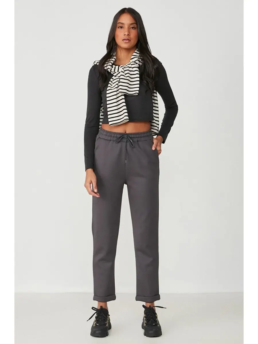 Combining comfort and style in everyday wear, the Double Hem Sweatpants 807 Smoke Grey-Grey are set to become an indispensable part of your wardrobe. Whether you're relaxing at home or meeting up with friends, you'll always look comfortable and stylish in these sweatpants. The elegant harmony of smoke and grey tones offers easy combination with all kinds of tops. It is an ideal choice for those who want to achieve a modern and trendy look.Thanks to its high-quality cotton fabric, it allows your skin to breathe and offers comfortable use all day long. The cotton texture leaves a soft feeling without irritating your skin. It is an excellent option especially for people with sensitive skin. Thanks to the durability of the fabric, you will have a long-lasting use experience.Its comfortable cut allows you to feel comfortable all day long without restricting your freedom of movement. Whether you're doing sports or carrying out your daily activities, you'll admire the comfort of the sweatpants. With its structure that wraps your body but does not tighten, it offers comfortable use throughout the day.The drawstring and elasticated waist detail allows you to adjust the sweatpants according to your own body. You can adjust the tightness of your waist as you wish and enjoy a comfortable use experience throughout the day. The elastic waist prevents the sweatpants from slipping, while the drawstring detail adds a stylish look.Thanks to its two useful pockets, you can easily carry your phone, keys or other small items with you. The ideal sizes of the pockets allow you to safely store your belongings. The pocket details increase the functionality of the sweatpants and also offer a stylish look.The double hem detail ensures that the sweatpants have a modern and trendy look. This detail distinguishes the sweatpants from others and adds a different atmosphere to your style. The double hem is a perfect match with both sneakers and casual shoes.The harmony of smoke and grey colors creates an ideal base for all kinds of combinations. Whether you combine it with a basic t-shirt or a stylish blouse, you will always look stylish. The harmony of colors supports the versatile use of sweatpants.Double Hem Sweatpants 807 Smoke Grey-Grey stands out not only with its comfort and style, but also with its ease of use and durability. This sweatpants, which will be an indispensable part of your wardrobe, is ready to accompany you in every moment.Remember, comfort and elegance together! Let your style speak with Double Hem Sweatpants 807 Smoke Grey-Grey. These sweatpants, which you can easily use in both sports and daily combinations, will be the savior of your wardrobe. Order now and enjoy the comfort!