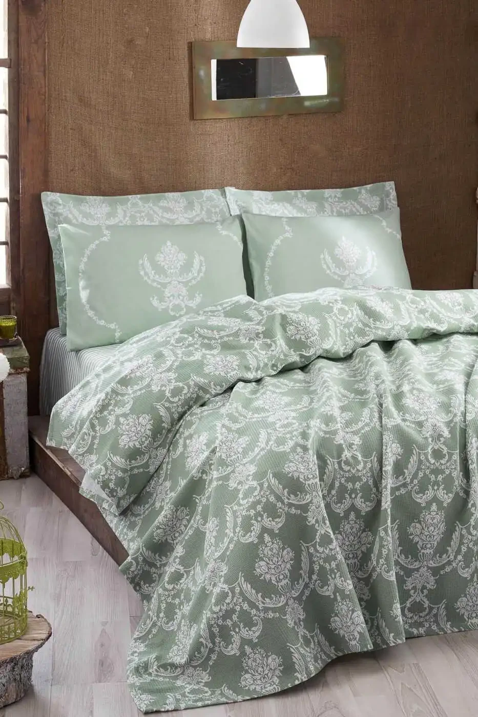 Double Size Printed Cotton Pique Set, 100% Cotton, 200x220 cm Pique, 2 pieces 50x70 cm Pillowcase