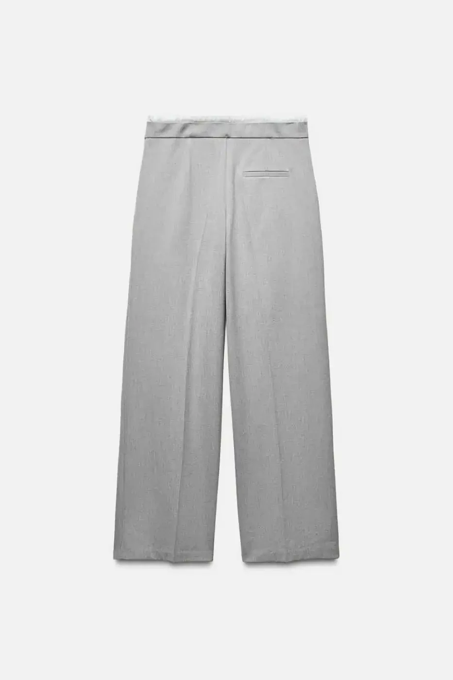 Add a sophisticated touch to your style with the Double Waistband Wide Leg Pants, the perfect blend of elegance and comfort. These pants will make you look glamorous in every setting, from everyday life to special occasions, with their modern and elegant design. The double waistband, made of contrasting fabric, offers both a perfect fit and a slimmer waist with its adjustable laces. The high waist cut elongates your legs, while the wide legs provide freedom of movement and comfort. The front pleat detail adds a stylish touch to the pants, making your body lines look better. Both stylish and practical, these pants will be one of the indispensable pieces of your wardrobe. The gray color is a timeless and versatile option. This way, you can easily combine your pants with tops, shoes and accessories in different colors and patterns. Whether you combine it with sneakers and a t-shirt for a sporty look, or with heels and a blouse for a chic invitation, you will always achieve a stylish and meticulous look. Double Waistband Wide Leg Pants, thanks to its high-quality fabric, keeps you comfortable all day long. Thanks to its breathable structure, it prevents sweating and allows your skin to breathe comfortably. Its durable fabric offers long-term use. These pants are an ideal choice for modern women who seek both elegance and comfort. Front pockets offer a practical solution for carrying your small belongings in daily life. Welt-trimmed back pockets add a stylish detail to the trousers. The hidden side zipper completes the clean and stylish look of the pants. These trousers are carefully designed in every detail and offer you a flawless style.