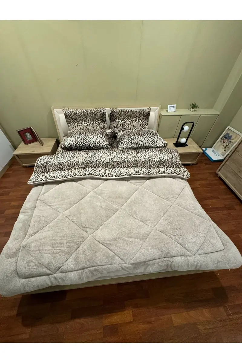 Combining style and comfort, the Double Welsoft Puffy Sleep Set is designed to make your bedtime more enjoyable. The sheet, made of soft and breathable Welsoft fabric, features a stylish leopard pattern for an eye-catching look. The fitted sheet provides a perfect fit on the bed, preventing it from slipping and bunching.