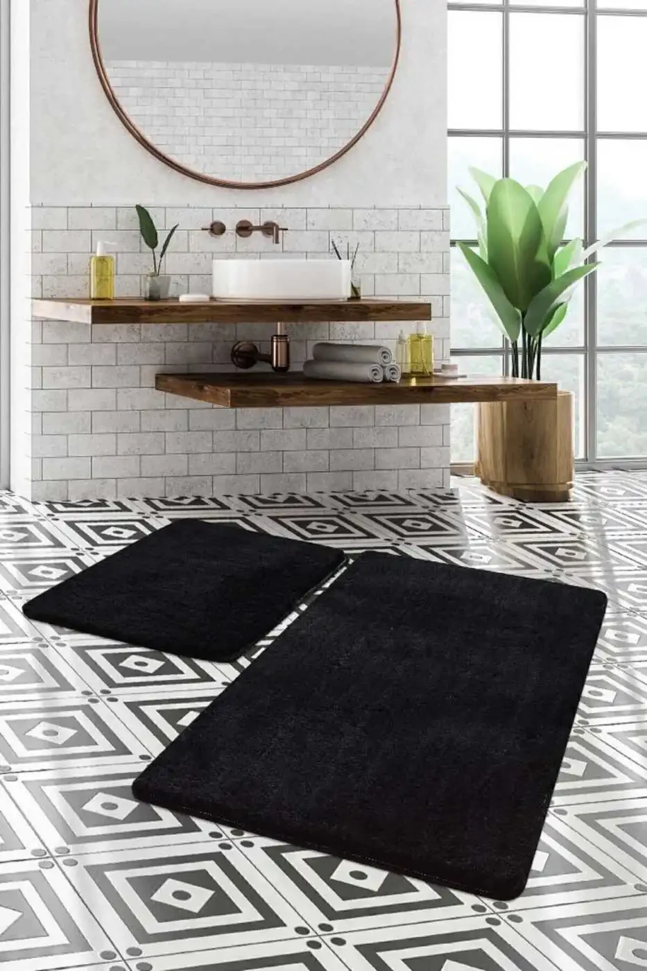 Transform your bathroom with our stylish and comfortable 2-Piece Large XL Bath Set! The large 100x120 cm bath mat and 80x50 cm bath rug create a spacious and luxurious feel in your bathroom while protecting your floors from cold and dampness. With its chic and modern black color, this set complements any bathroom decor and is made from high-quality materials. Its soft, plush texture will pamper your bare feet, while its water and stain-resistant construction ensures it will last for years to come. Easy to clean for daily use, this bath set will save you time and energy, offering a luxurious bathroom experience and practical convenience. The perfect choice for those seeking both style and functionality, the 2-Piece Large XL Bath Set will become an indispensable part of your bathroom.