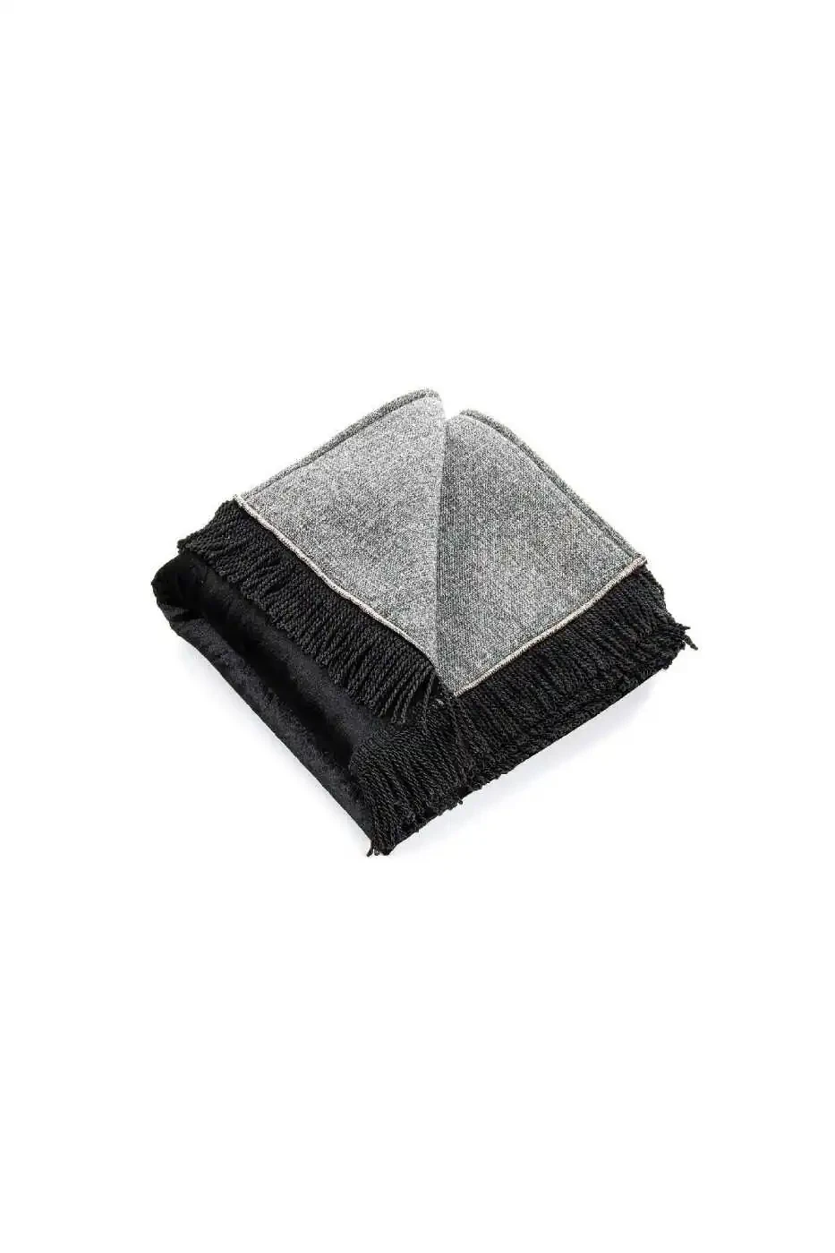 The knitted fringe details give the rug an aesthetic appearance and enhance its elegance. The black color ensures that it matches any environment and can be easily cleaned. The polyester material guarantees the rug's durability and longevity. Thanks to its dowry box, you can also offer it to your loved ones as a special gift option.