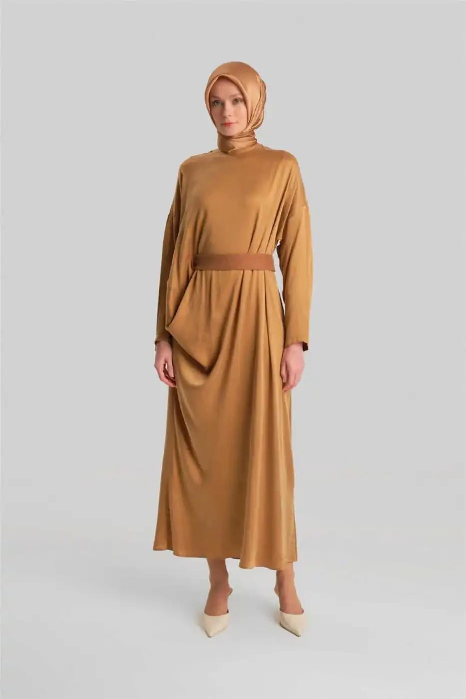 Платье с драпировкой и поясом для скромных нарядов | Скромная мода