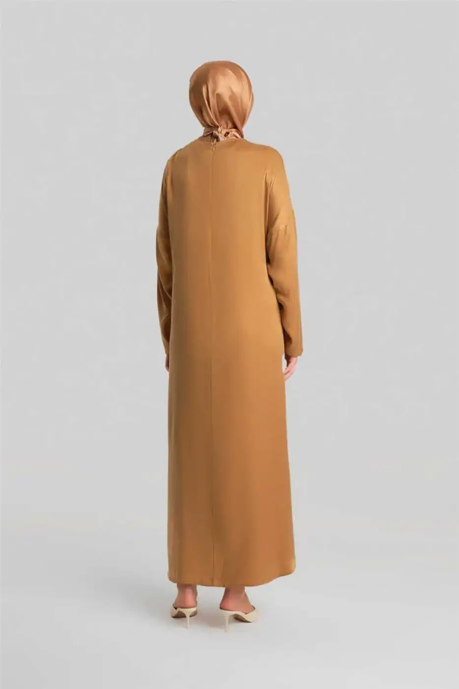 Максимальная длина создает изящный и величественный силуэт, а длинные рукава соответствуют стандартам скромной одежды. Это платье, специально разработанное для нашей коллекции скромной одежды, излучает как стиль, так и изысканность.